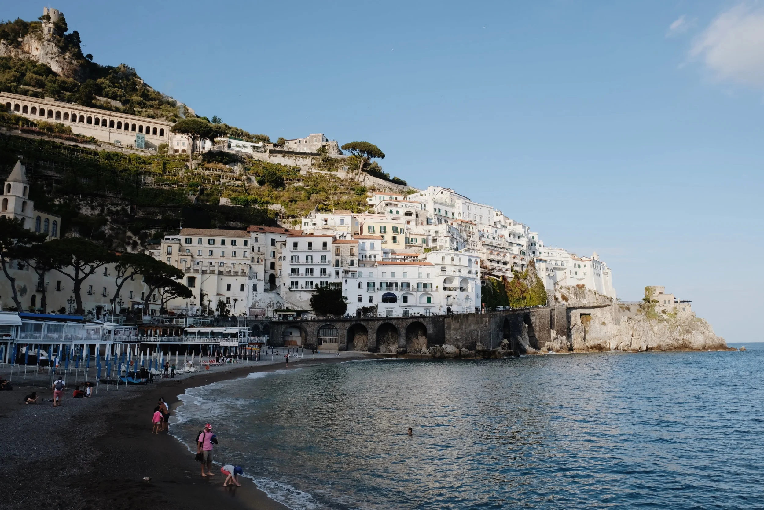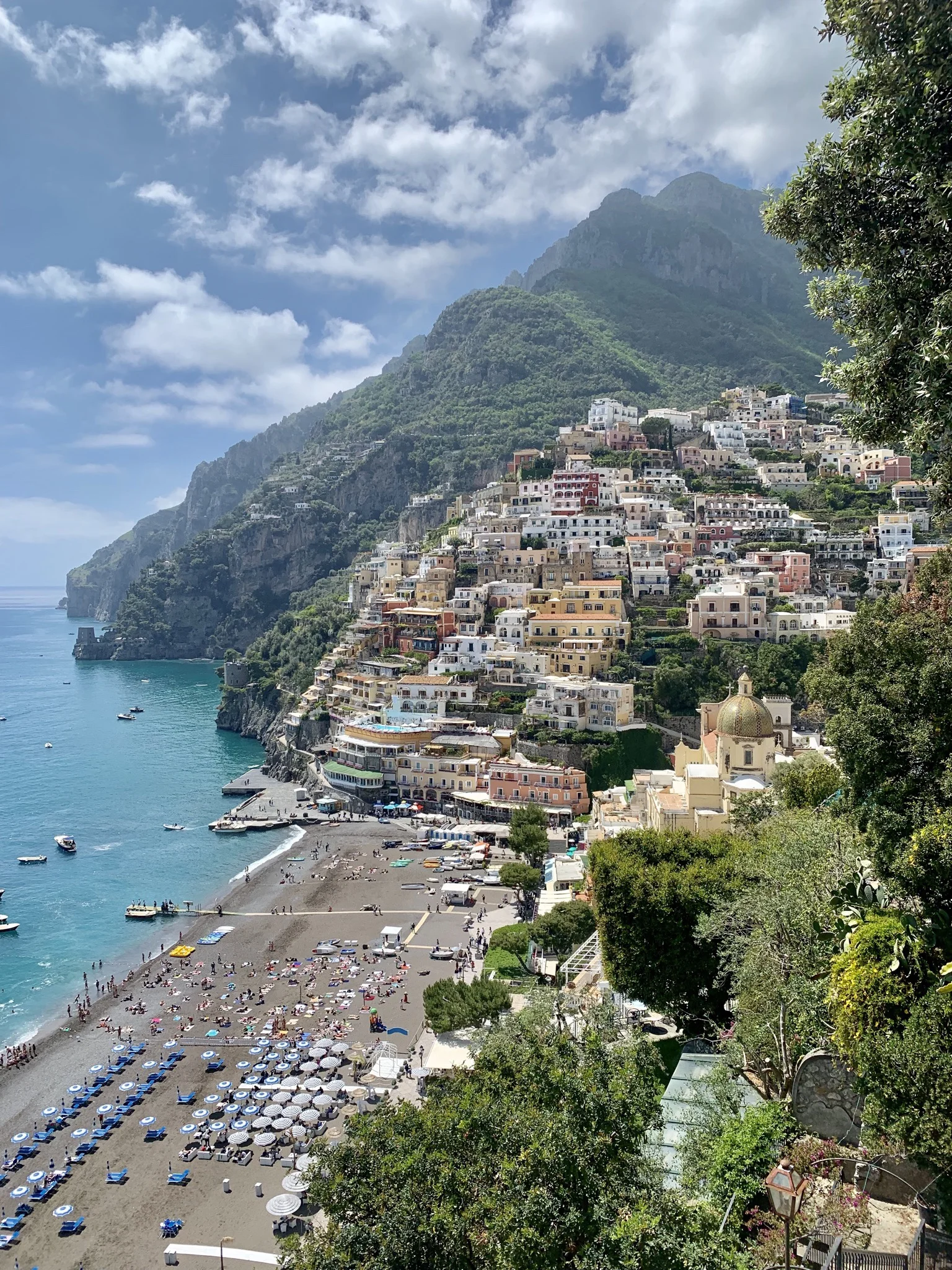 The sun came out just as we arrived in Positano and we decided to have lunch outside with a view. We were beyond hungry after our long hike and our pastas were delicious with an ice cold beer. We headed down towards the main part of town and to the beach after lunch, and of course as we got closer to the water on the beach I got my shoes wet while trying to touch the water…
