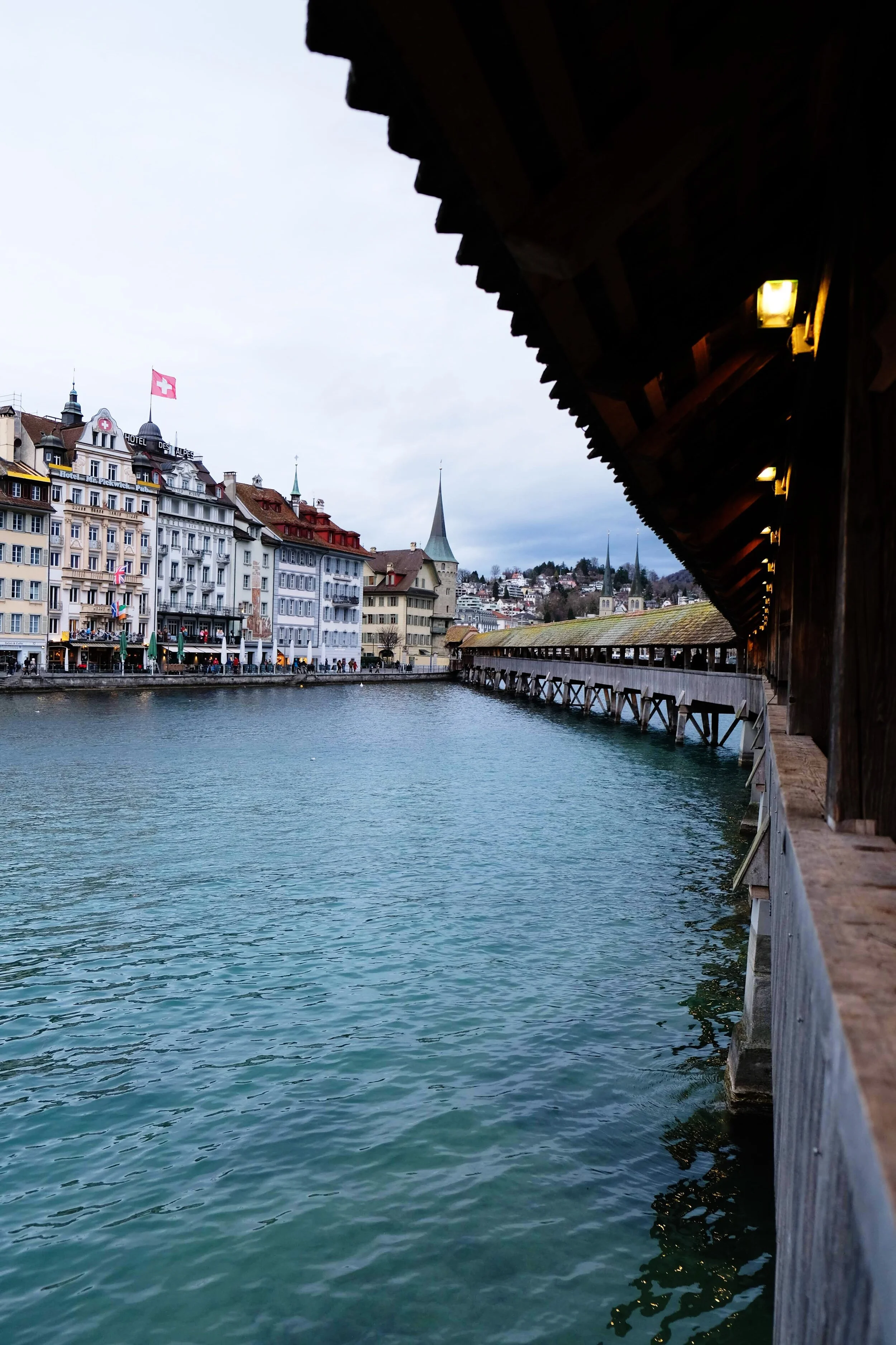 I made it back to Lucerne just in time for sunset and walked across the famous Chapel Bridge, a wooden bridge dated back to 1333 and now the oldest one in Europe. Right by the water there is a casual eatery called Mill’Feuille and I finished out my day with a meal before heading back to my castle for the night.