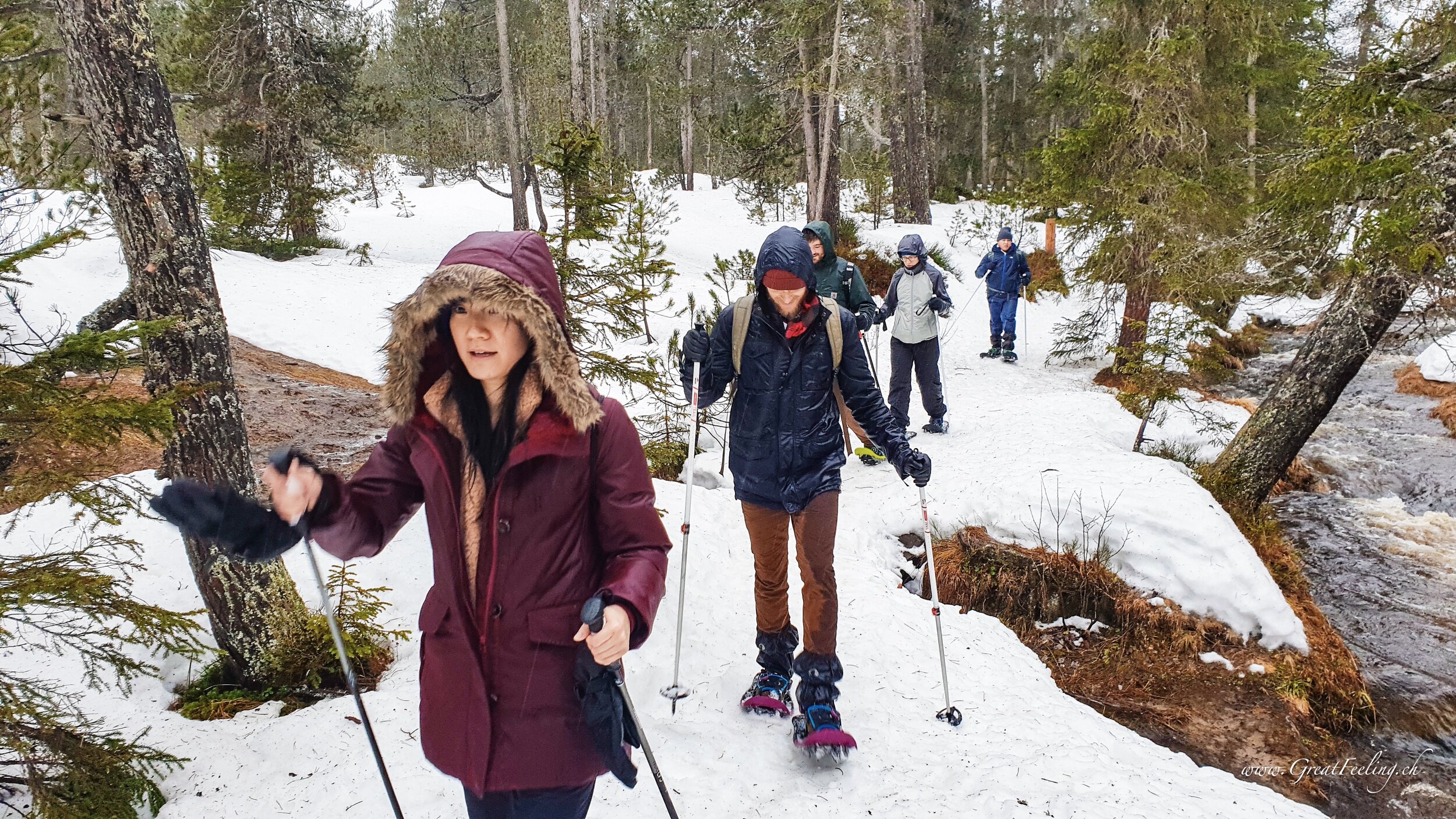 I was looking for activities to do while in Switzerland and decided to check on Airbnb experiences since I enjoyed my last one in Italy a lot. I came across a snowshoeing tour in the Lake Lucerne region that worked with my schedule, and reached out to the host René to confirmed the details before I booked it. I checked out of my hotel in Lucerne early and took the morning train to our meeting point in Sarnen. René picked me up from the train station and we drove up to Langis to met up with the rest of my group. When I first tried on the snowshoes I must have walked like a penguin but I got used to them pretty quickly. Water flows through underneath the snow and the snow is still very fresh, so at times we would find ourselves stepping into knee-deep snow or waterholes - waterproof footwear is a must! Langis is popular not only for snowshoeing but also for cross country skiing, and we saw a few skiers pass us by on our hike!
