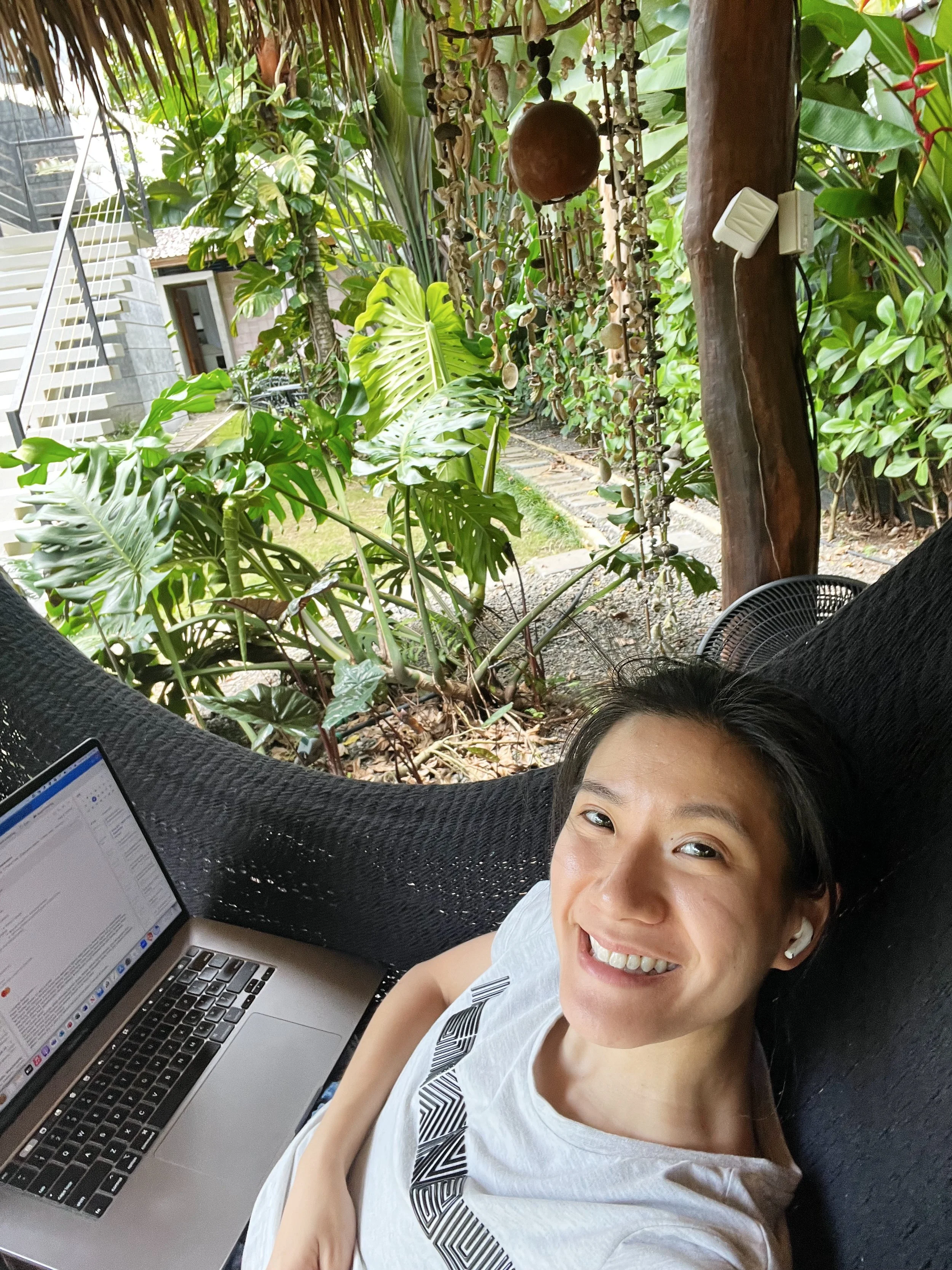 Here’s my friend’s tiktok documenting our work day! My favorite spot is the hammock but the laptop does heat up on your lap…