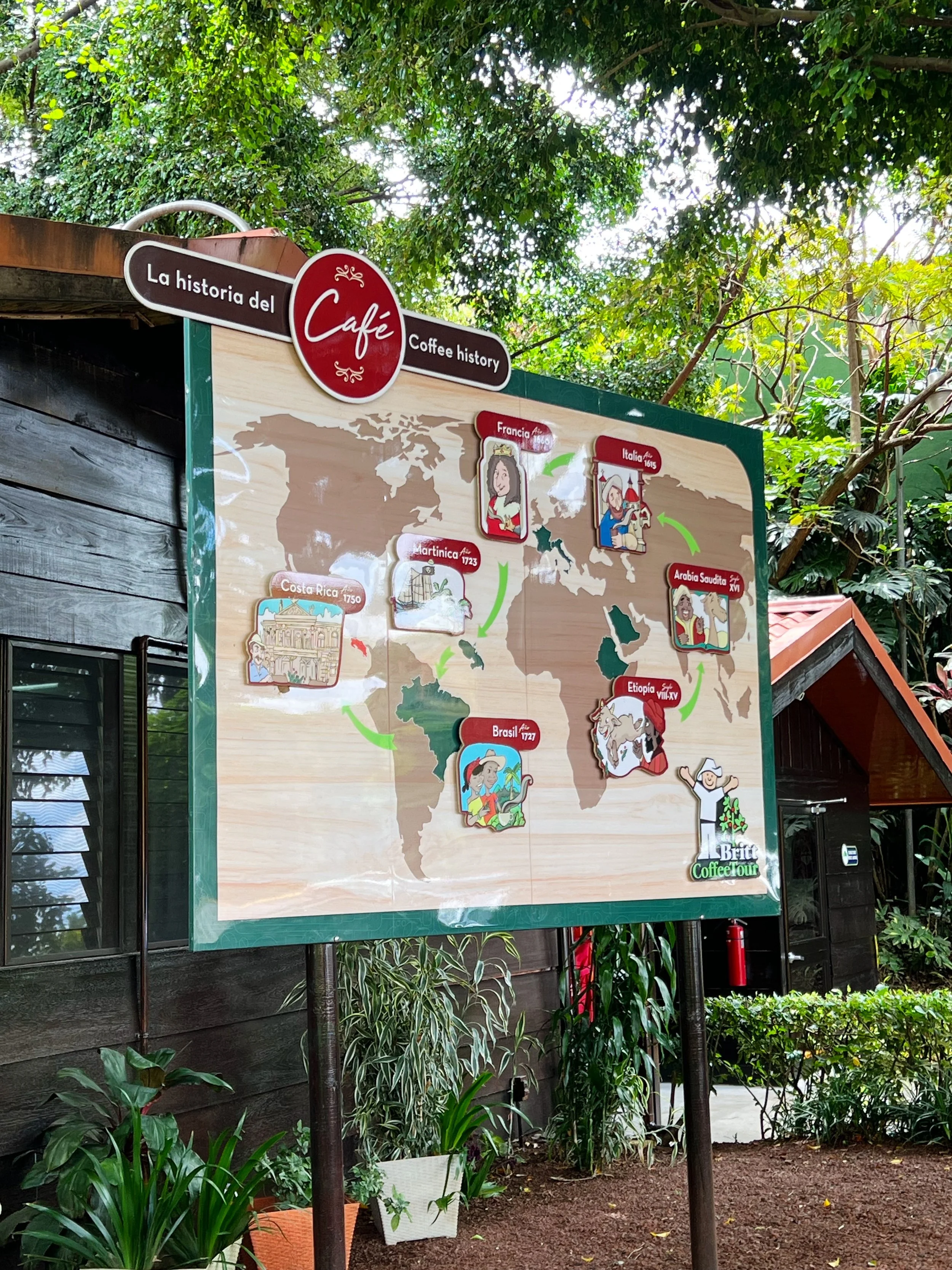 Before making the drive to Jaco we had one activity in San Jose, and that was a coffee tour at Britt. I would later find out that Britt is probably one of the most famous coffee brands in Costa Rica (or at least to tourists) because they practically makes up 80% of the retail space at the airport selling coffee and related merchandise. The coffee tour is held at the Britt Coffee Roaster location just 20 minutes from the San Jose airport, and our tour guide Maria who was amazing and incredibly funny kicked off the tour with a history lesson.