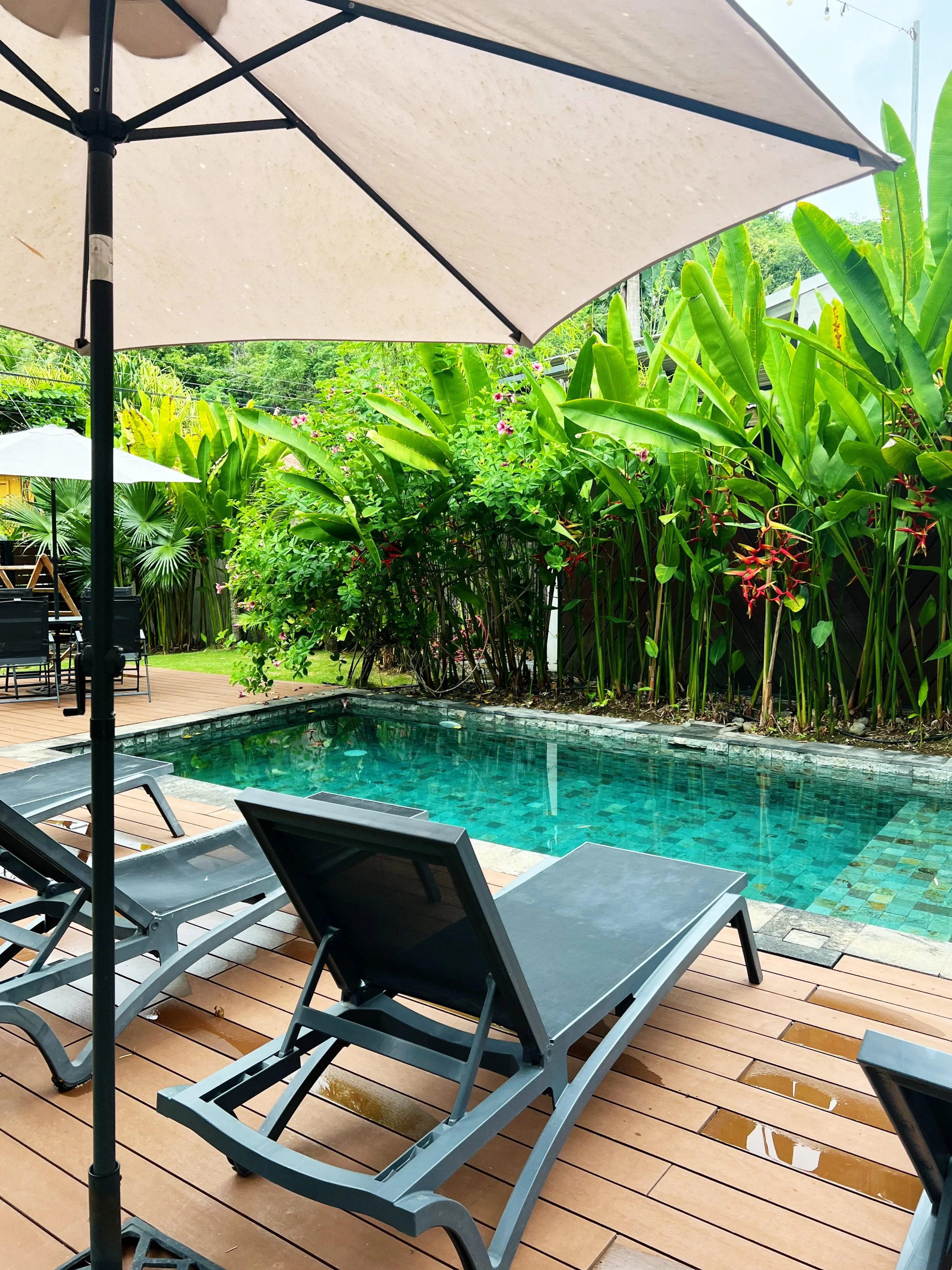 We arrived at our airbnb and home office for the next week, a lovely 2-storied home with a front yard, natural stone pool and balcony. It felt like an oasis in the middle of all the luscious greenery. More photos of the beautiful home to come later throughout the blog!