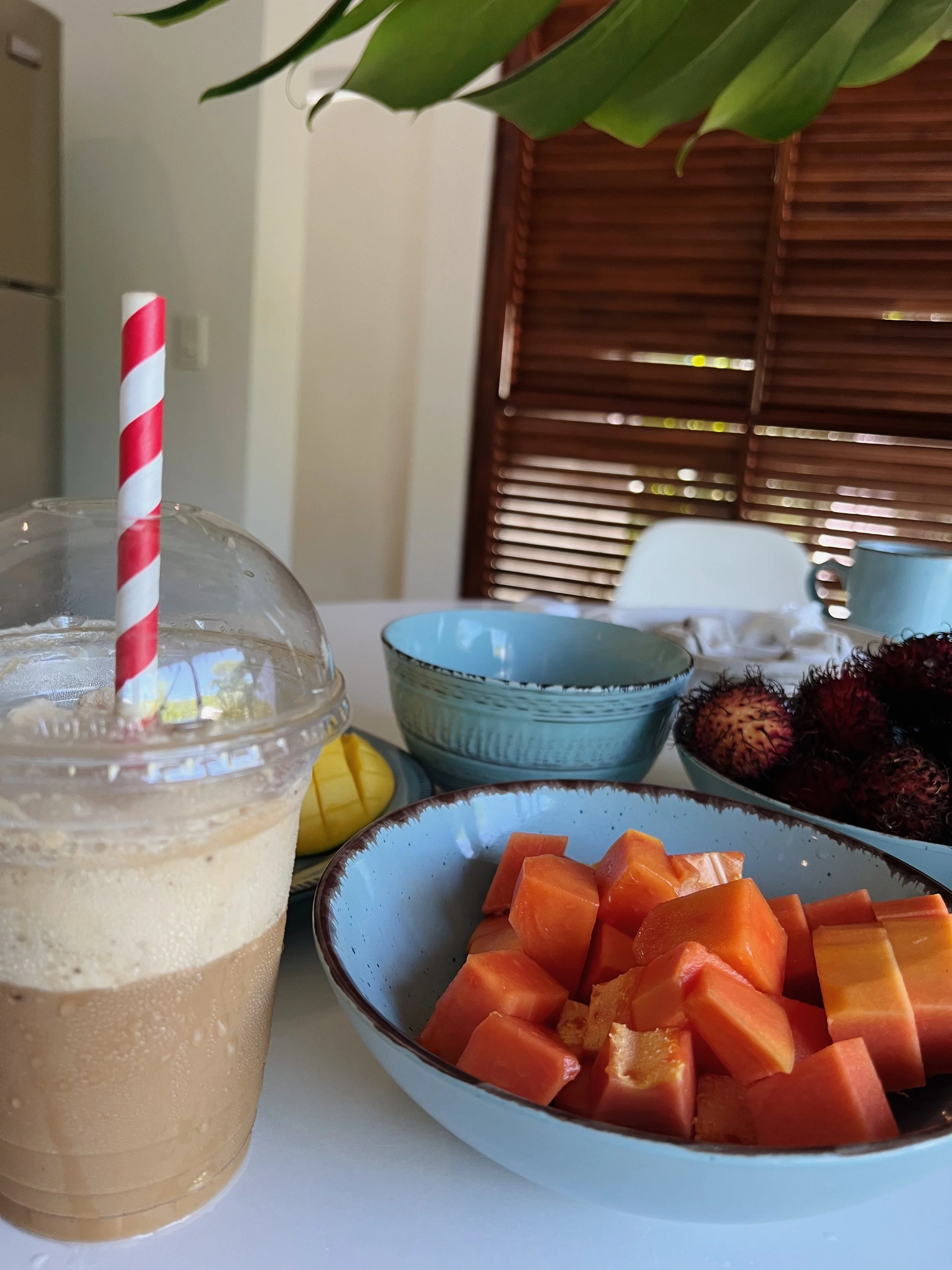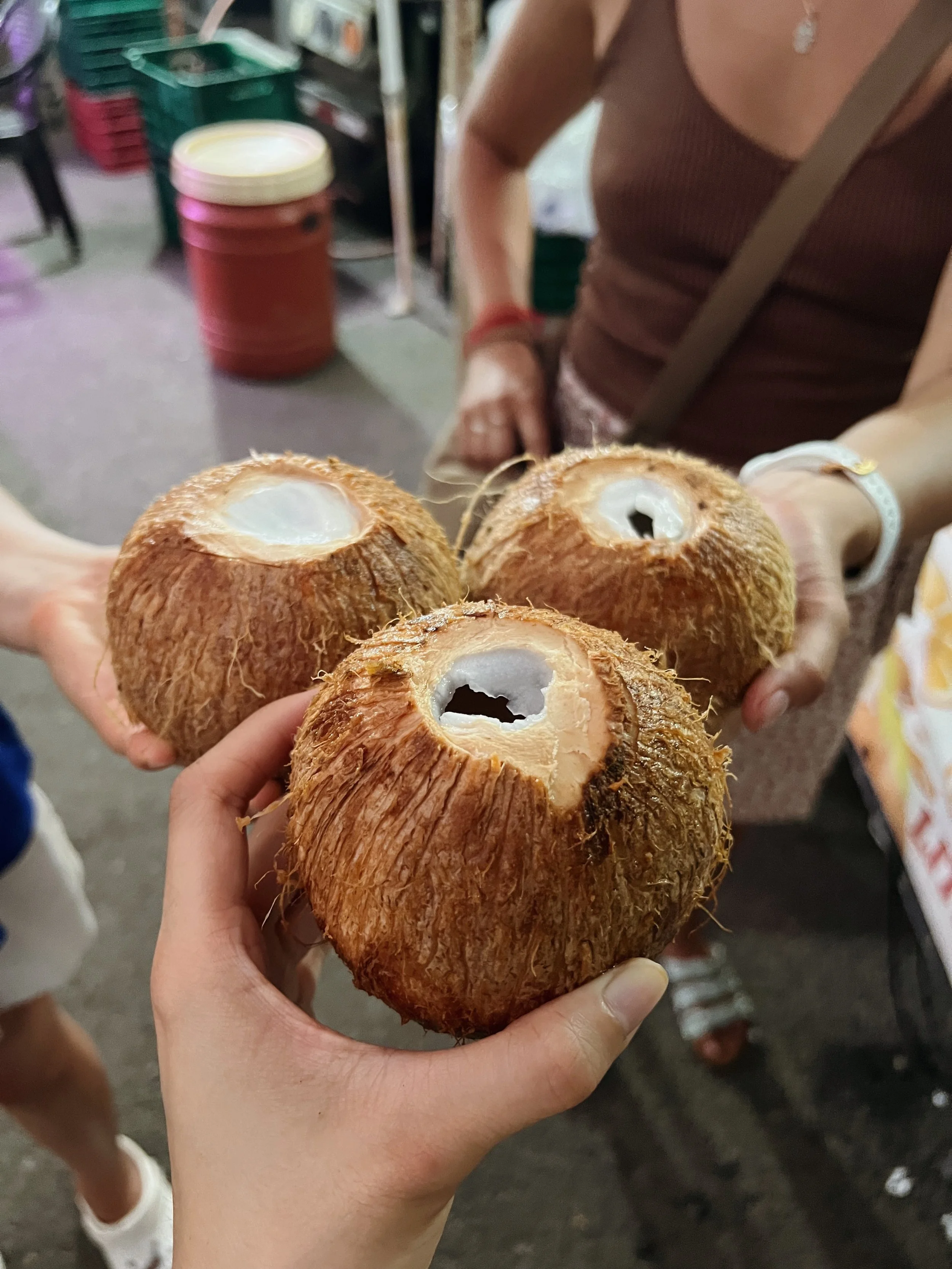 We picked up the ones that we know and love - papayas, mangoes, but not more rambutans because we have at least another 2 pounds back at the airbnb from previous trips. We also got to try some fresh coconut water to keep us cool in the summer heat.