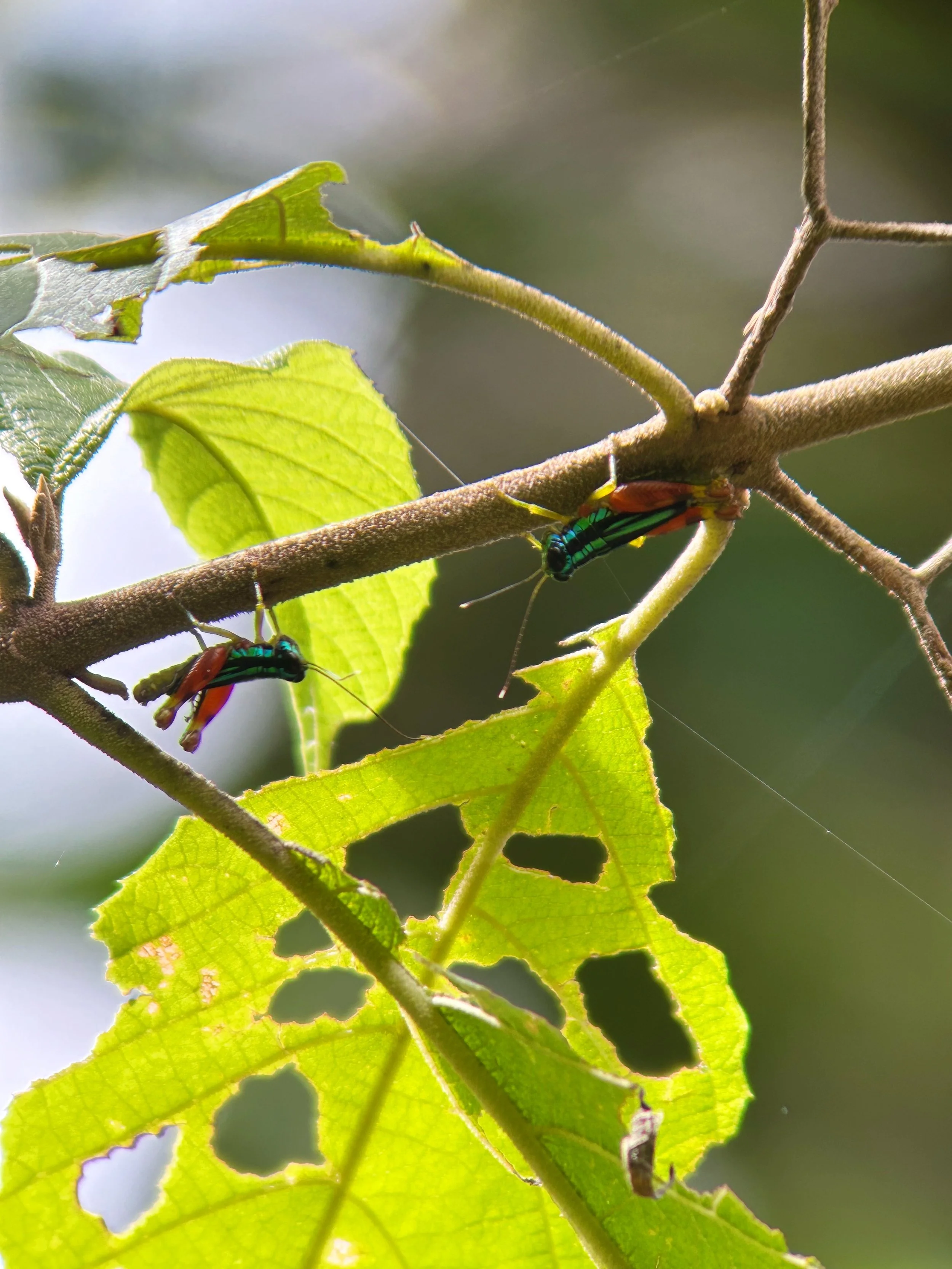 Most of the photos taken below are done on an iPhone through the binoculars. If you’re wondering what the photo of leaves with light brown stick floating in front is - there’s actually a spider hiding in there!