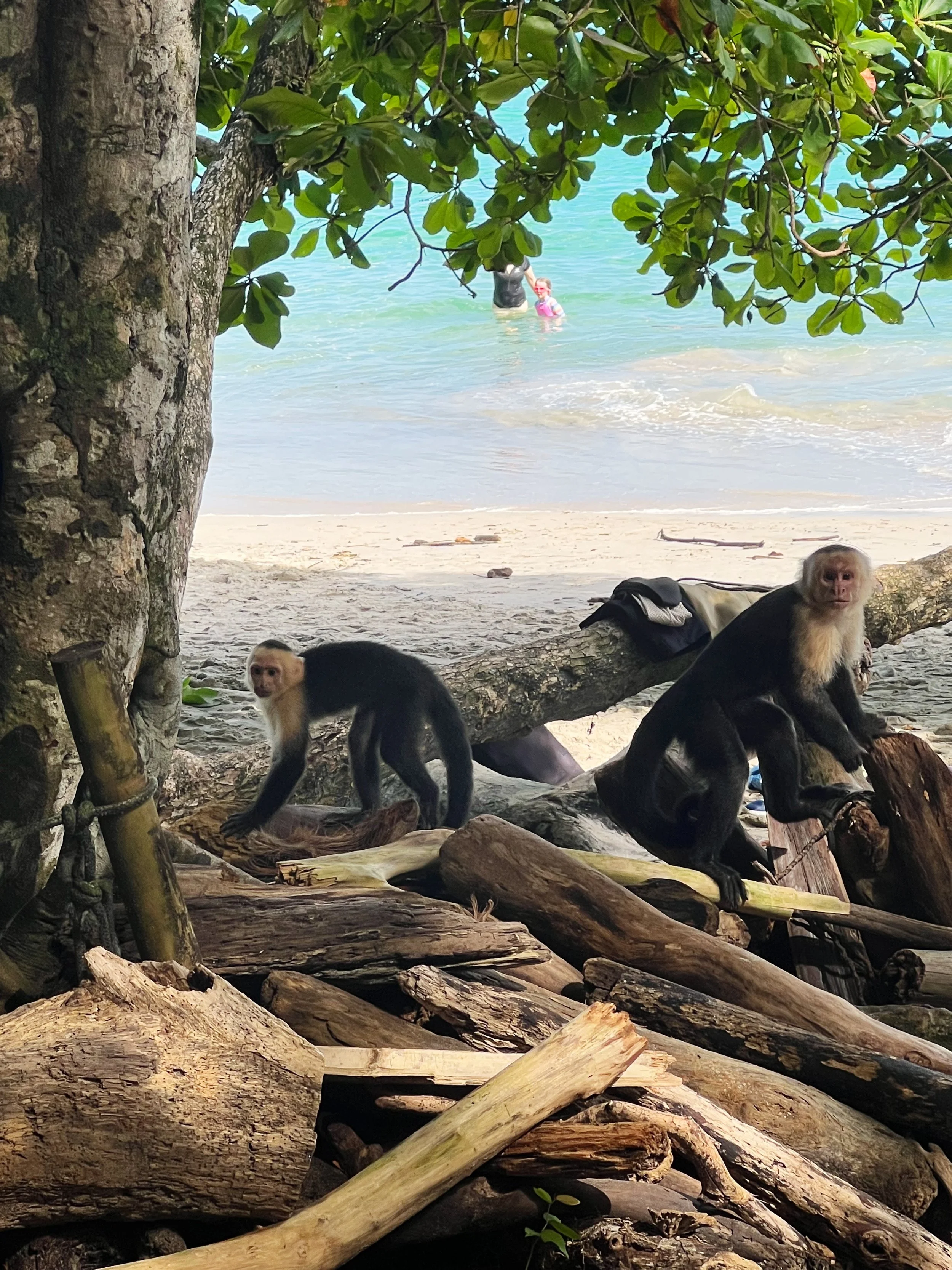 Our guided tour ended at the beach inside the National Park and we’re off to explore on our own. We came across a dozen or so white-faced monkeys who like to hang around the lower branches of the trees by the beach. Andres had mentioned that some of these monkeys have been diagnosed with diabetes from coming across human food- another reason why the park is so strict about what you can bring in. To exit the national park, we followed the path around the beach and cut through the rain forests to arrive back at the entrance. Clouds started rolling in and thunder can be heard in the distance, so we knew some heavy rain was about to roll in.