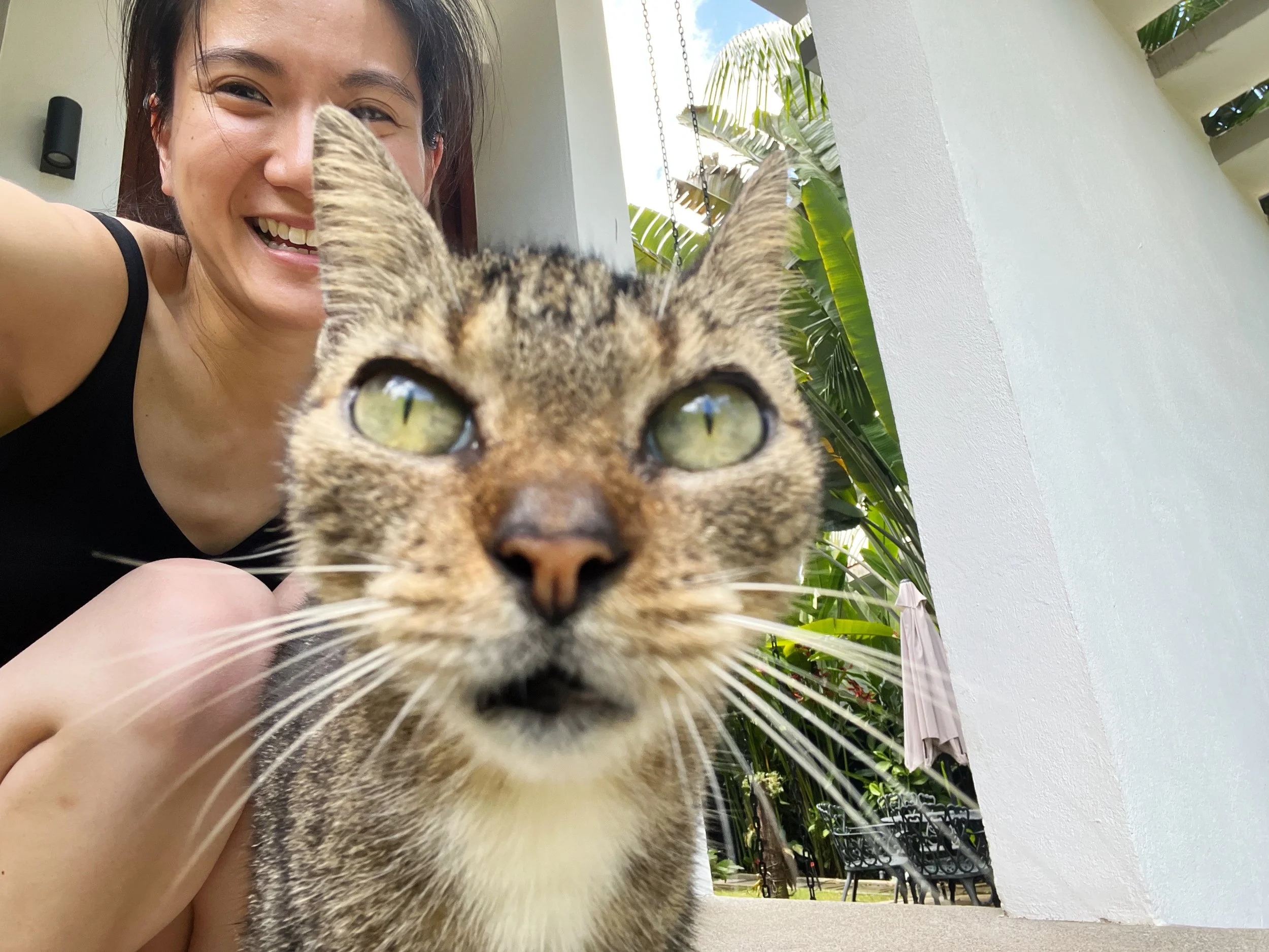 My work day started with our friendly visitor making a cat walk down the front yard as soon as I opened the front door. He (I think it’s a he?!) stayed pretty much the whole day, sunbathing by the chairs and on the porch. As the cat takes its morning patrol around the priority, I stationed myself upstairs on the balcony and carried on through my work day. The day flew by and I took a nice after nap in my air conditioned room, took a dip in our pool and finally took out my camera for some shots of the beautiful home in the afternoon light.