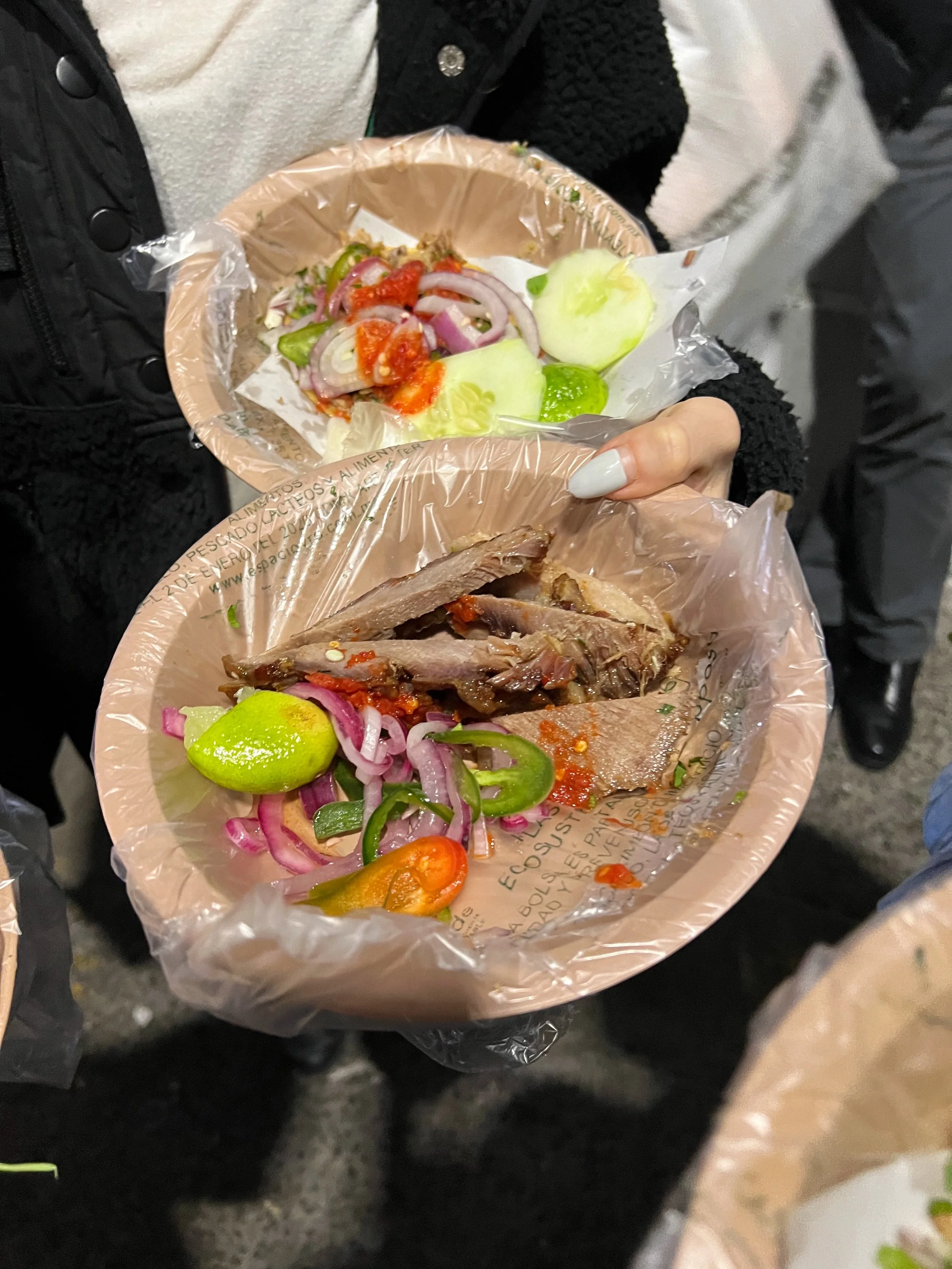 The 4th spot is a fried food spot that’s right in the mercado. We passed through stalls of nail ladies and rows of people getting their nails done. It’s a popular night time activity after work and people also stop by the mercado for the deep fried quesadillas. I was beyond full at this time but we had to get one more in, and that was Taqueria El Califa de León serving beef tacos with such tender and juicy beef! We ended the night with churros as desert and I was very proud of myself for finishing the tour while recovering from the stomach bug.