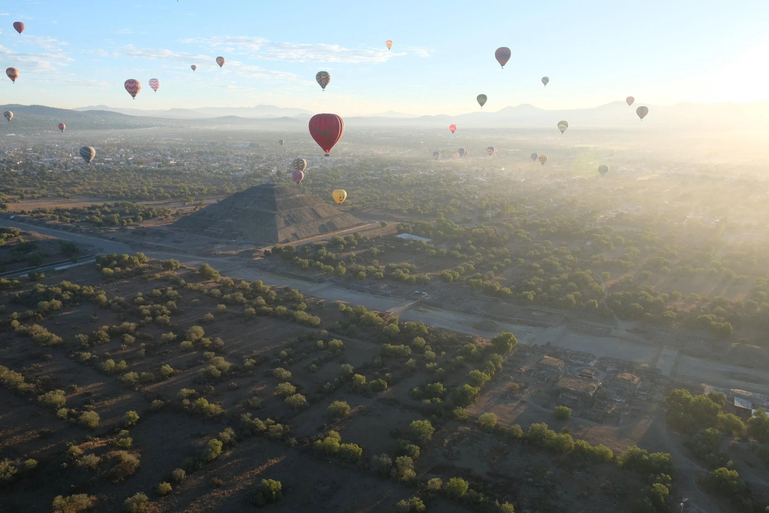I had imagined the hot air balloon ride to be at least a little bit turbulent but it was a smooth ascend and so soothing up in the air. We watched all the other balloons climb in altitude around us as we gradually made our way over the Teotihuacan Mesoamerican Pyramids. The photos I took look like what you would see in a video game - it almost look unreal. I am so glad I finally got to go on a hot air balloon ride after failing to do so in Myanmar and Turkey! It was our friend Tra’s birthday and what a nice way to celebrate the sunrise up in the air!