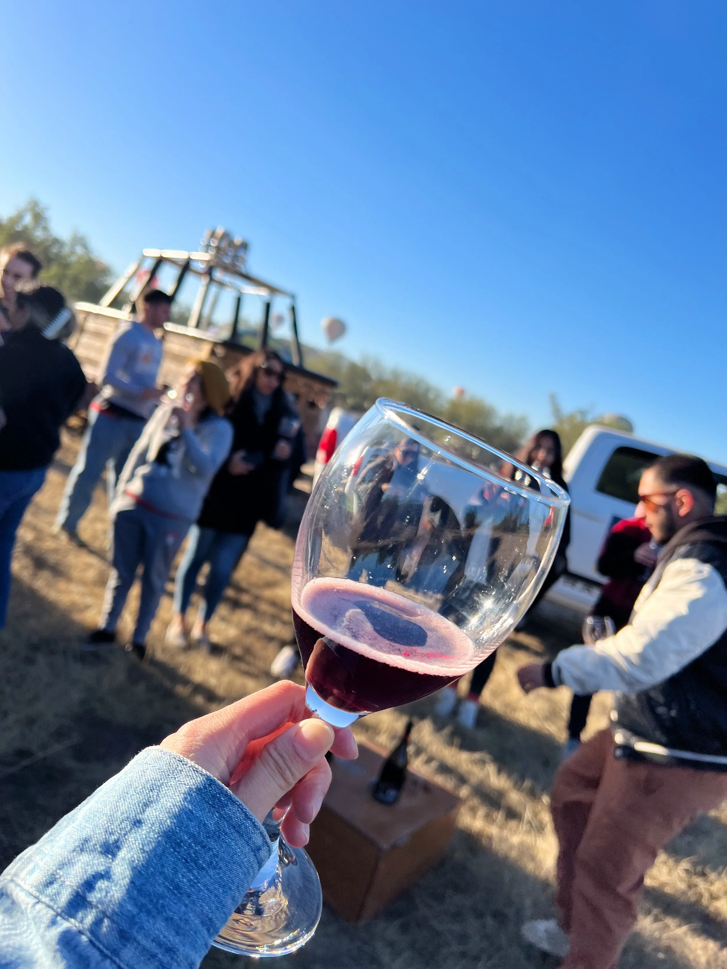 After being in the air for about 40 mins we prepared for our landing and landed in a big open space. The basket needs to land on a tractor and we watched the crew member pack up the giant hot air balloon into a cube maybe the size of a 4ft x 6ft cube. We shared a toast - a tradition after any hot air balloon flight - to celebrate the successful fight, and a van took us back to our took off spot.