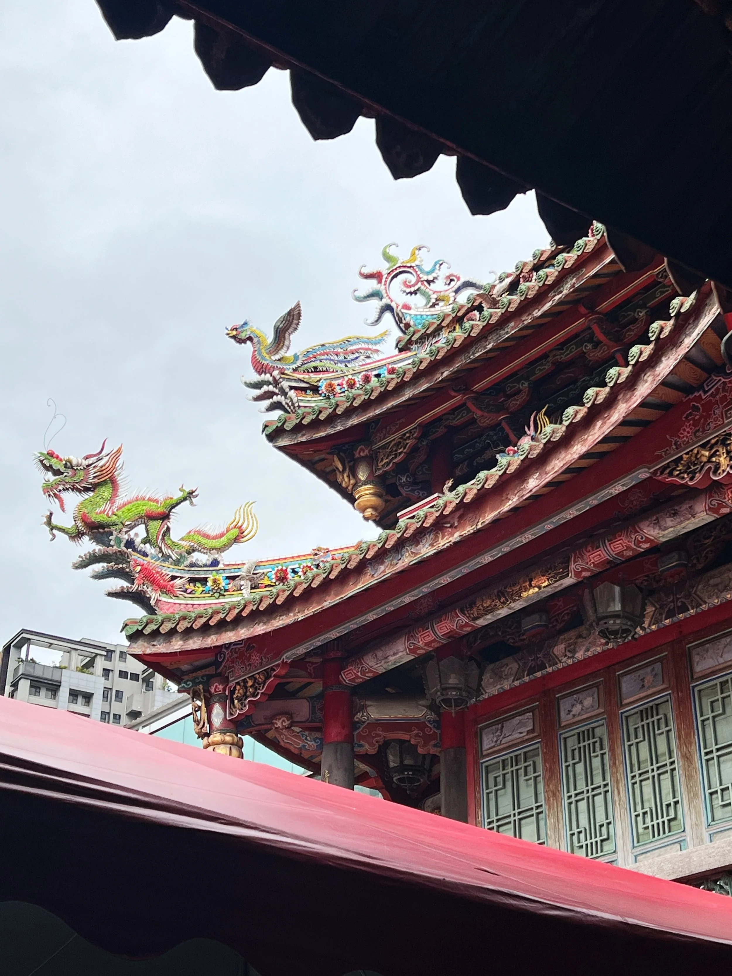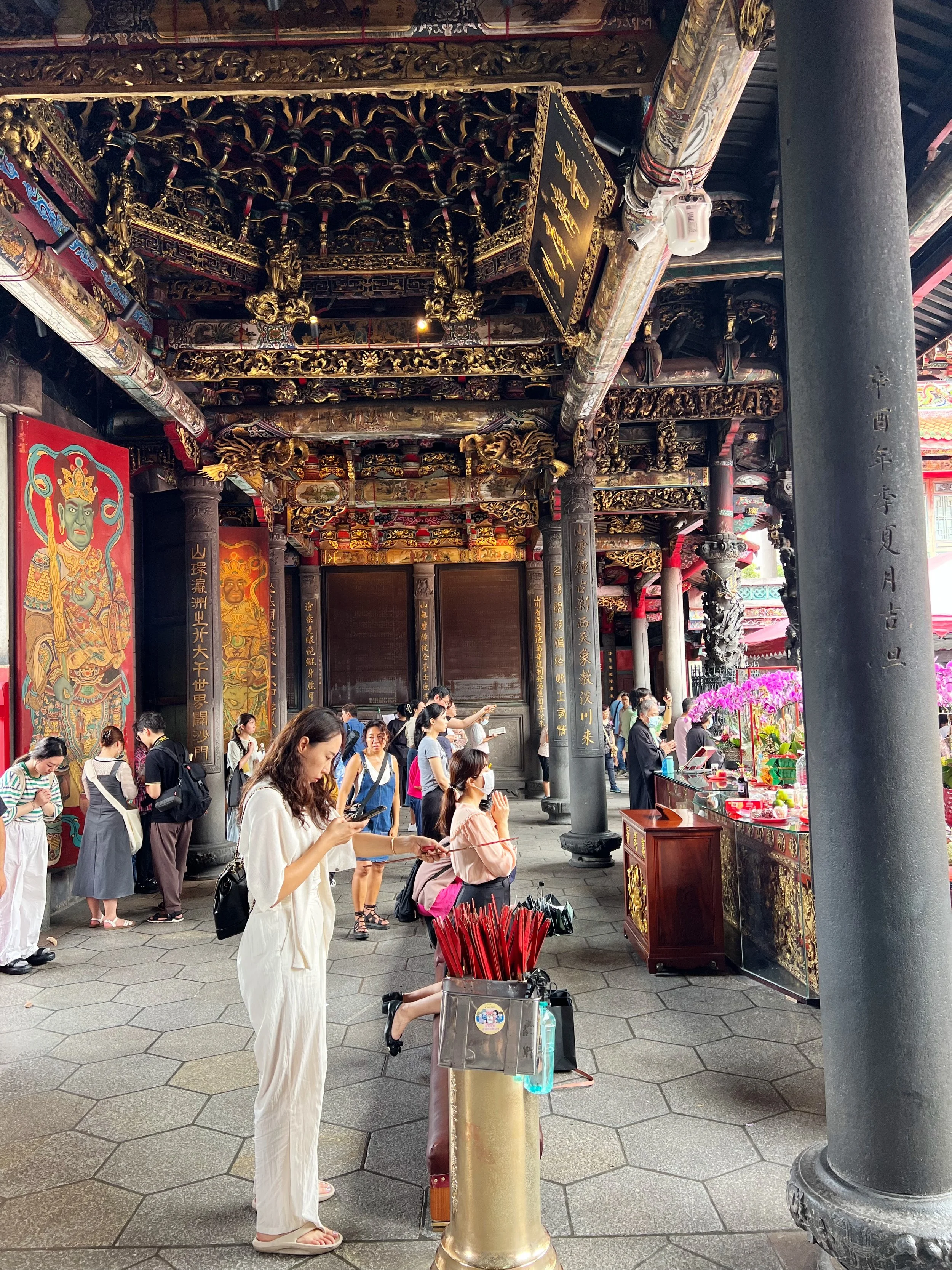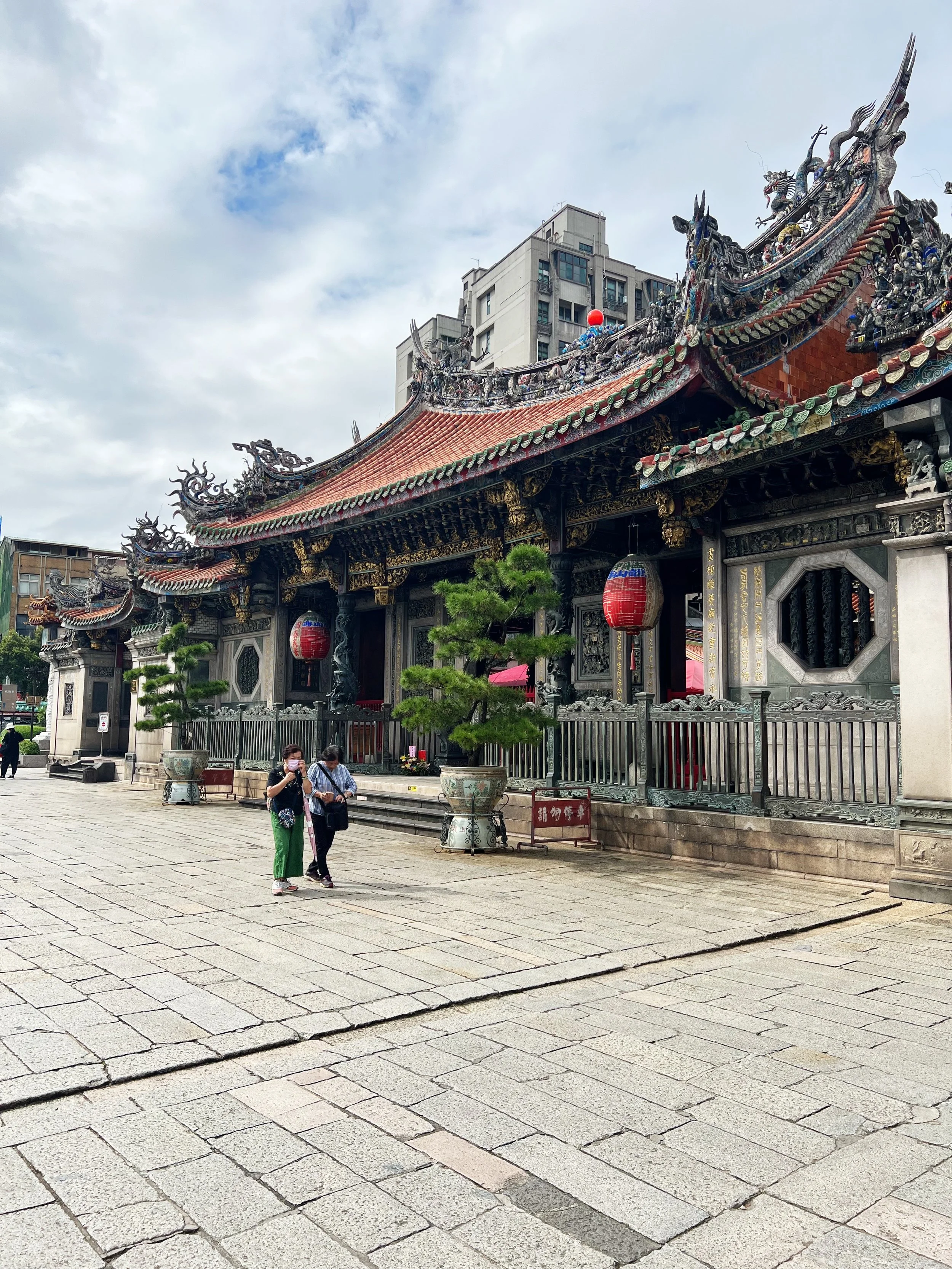 We got to Lungshan Temple station but first it was time to stop and get a drink since it’s a very hot day out. I got a bitter melon drink and it was surprisingly refreshing. We then visited Banka Lungshan Temple (艋舺龍山寺), dating back to 1738. The temple has been destroyed multiple times, ranging from natural disasters and WWII, but the statue of goddess Guanyin Bodhisattva in the front hall was the only piece untouched. It was even said that in the past during air raids, people would seek refuge under the goddess’s lotus seat. We took a loop around the temple and saw the deities in the main hall and the rear hall. There was a prayer session going on while we were there and it was a pretty impressive sight. Just before the exit, the visitor information center sells lucky charms and bracelets and gives you instructions on how to bless the gift before gifting!