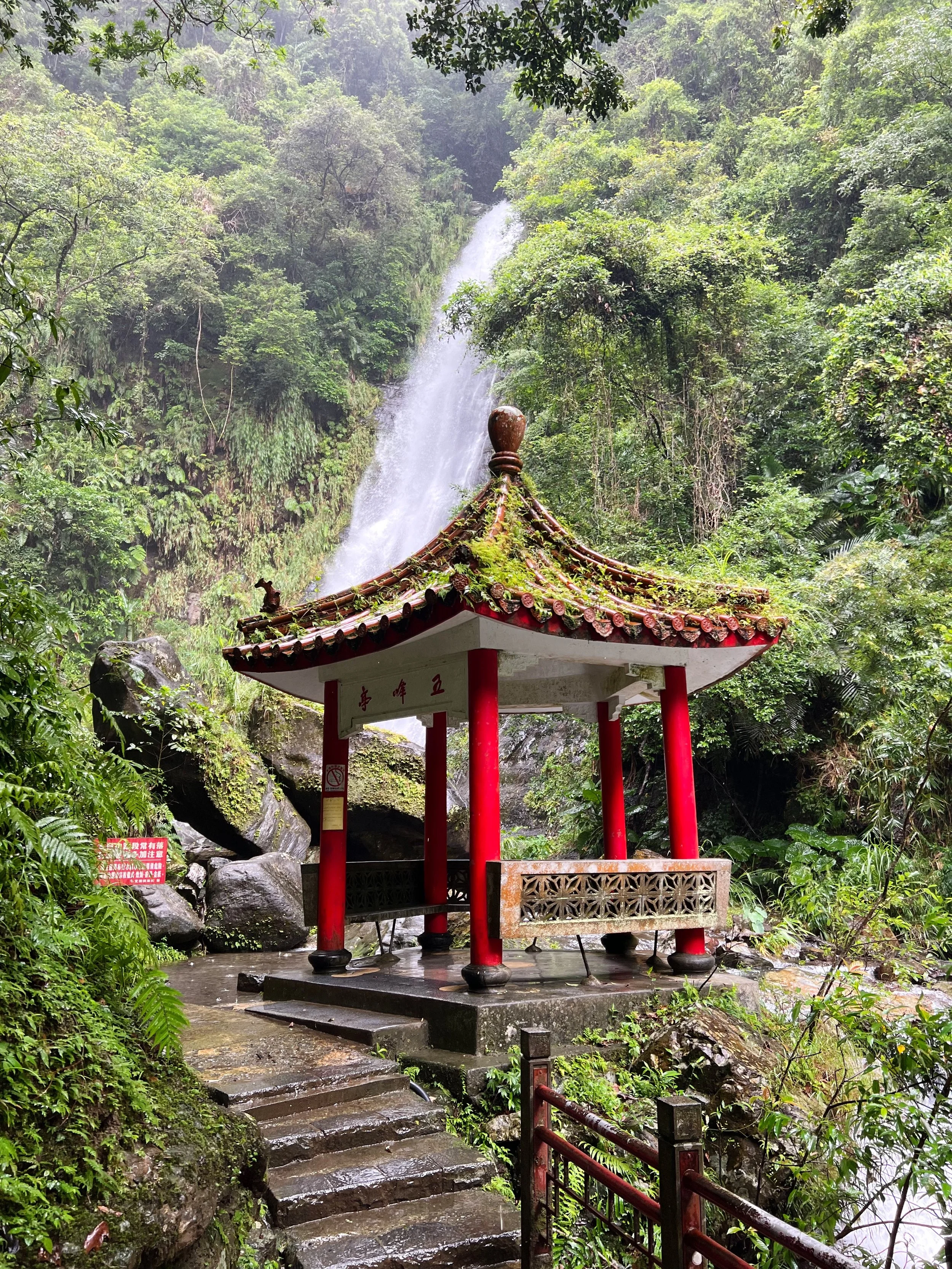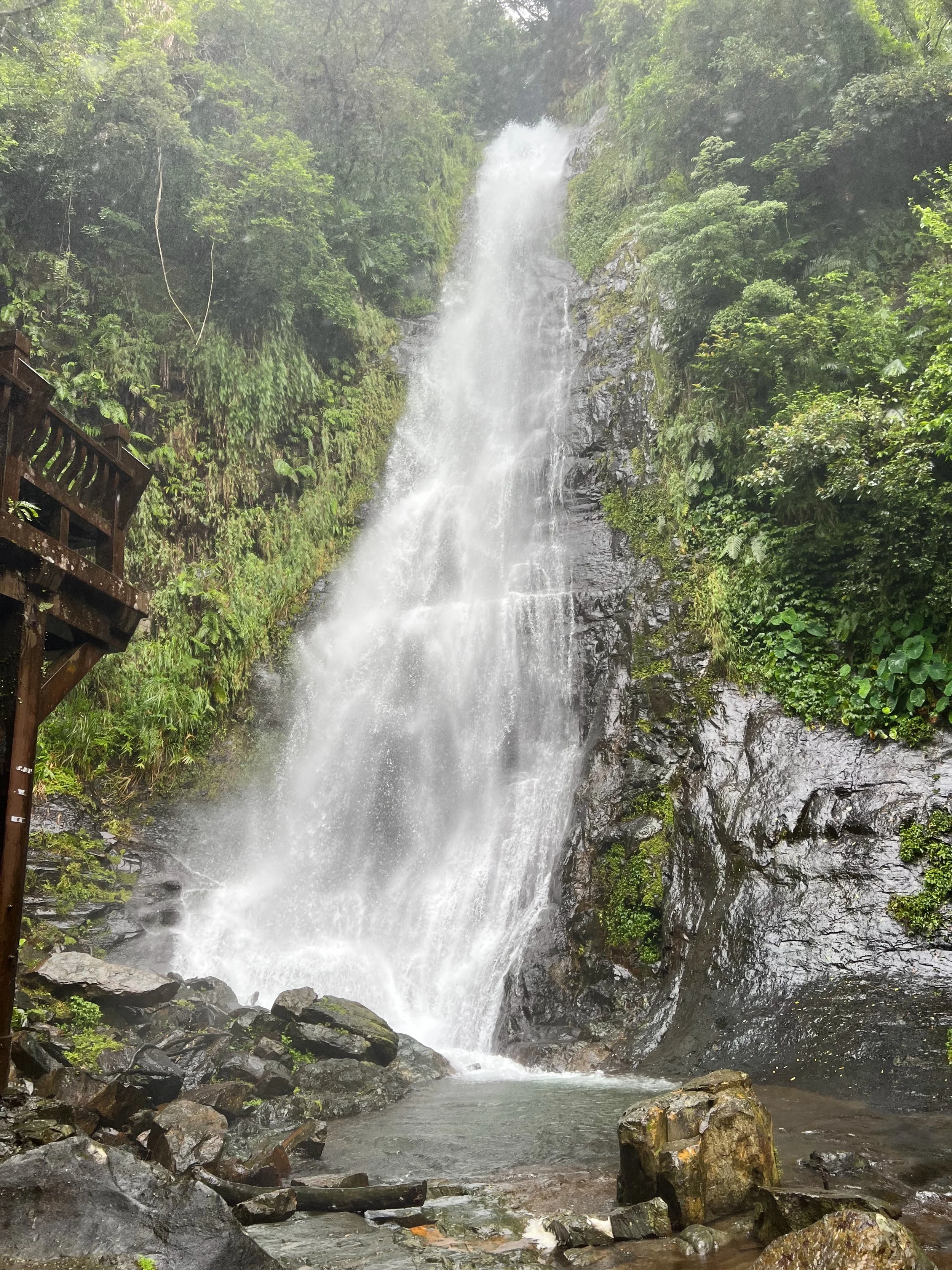 It’s raining today so we scrapped our original plan of biking to another breakfast spot and ended up back at Wang Mama Breakfast Restaurant (王媽媽早餐店). We have a day trip to Yilan (宜蘭) planned and it’s a group of 11! Our group split up into groups of 6 and 5 as we have friends driving, and hired a driver, Mr Zhang, to take us around. I actually got Mr Zhang’s contact through my aunt who had visited Taiwan a few years back and communicated with them through WeChat about a 3 weeks before our trip since our trip was around the national holiday in the first week of October. Mr Zhang was very nice and accommodating, even recommended routes for us and helped us planned out the rest of our day. Our first stop was Wufengchi Waterfall (五峰旗瀑布), a short little hike of about 15 mins to get to the 2 sections of the waterfall. Normally I would hate hiking in the rain but this rain did help make the waterfall look more grand - we were bound to get wet getting close to the waterfall so I guess the rain on the way didn’t really matter. It did look like I took a shower coming back down the hike though 😅