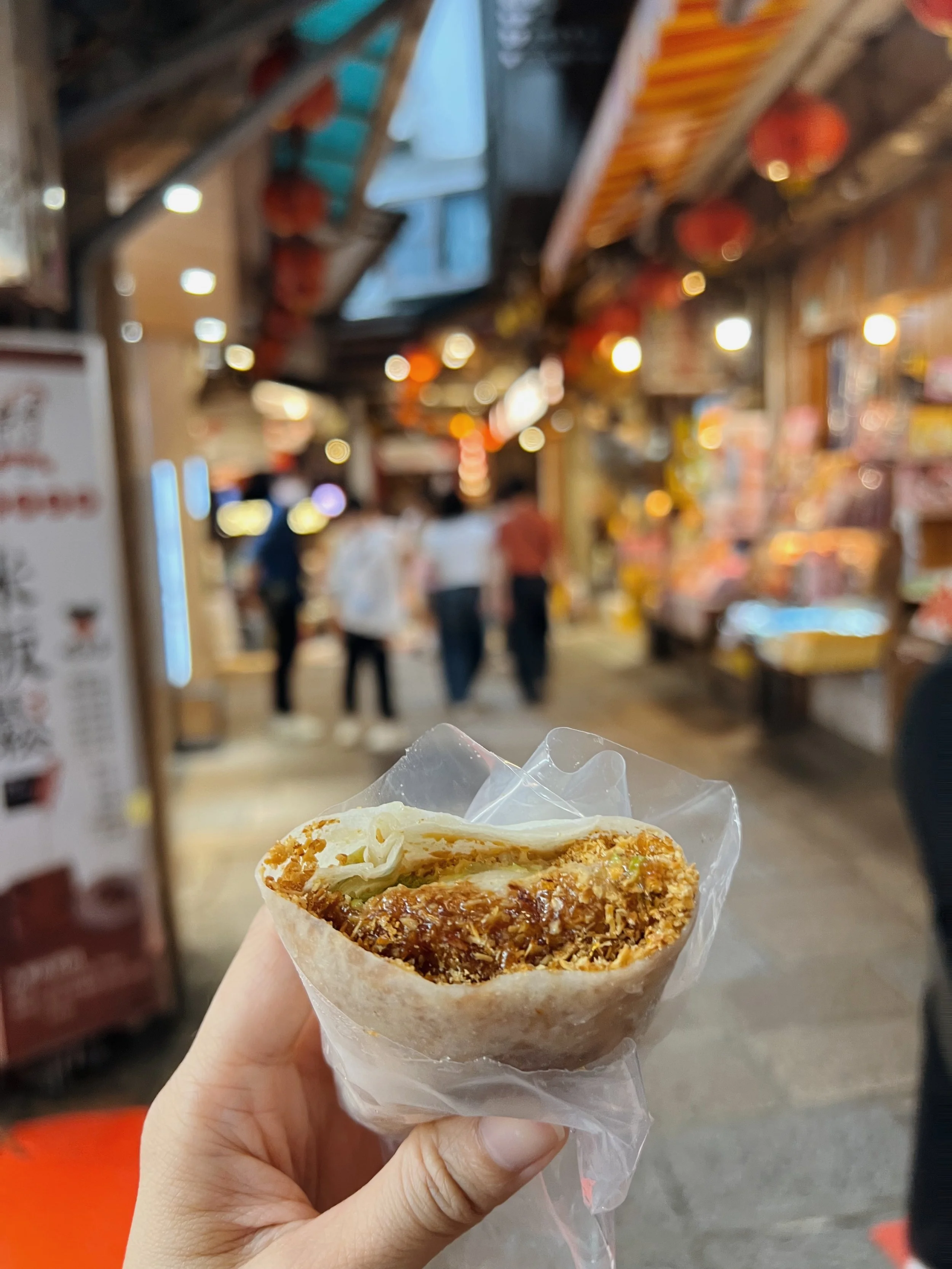 Shifen is known for releasing sky lanterns with written wishes (放天燈), and I have actually never been to Shifen before on any of my previous Taiwan trips so I am glad I got to try this out with our group! We started off with some souvenir shopping along the street while waiting for the rain to subside. The stores carry these “blind pouches” that are mystery packaged Taiwanese keychains, and I was immediately drawn to the cat series and the beer series. This is a genius idea because we all kept wanting to get more to get the specific one we want (is this what gambling feels like?) They make great gifts too but I just wanted them for myself 🤪