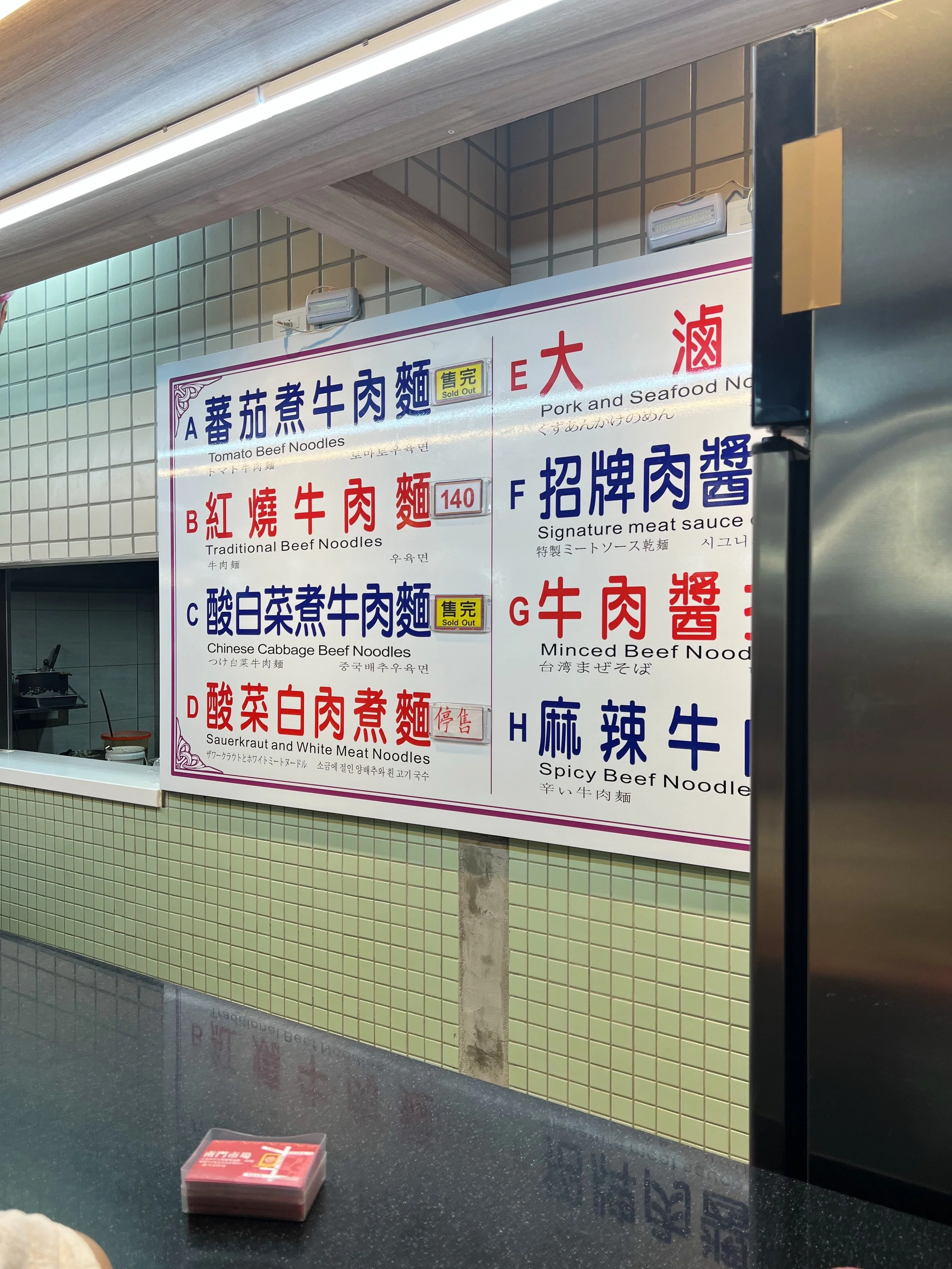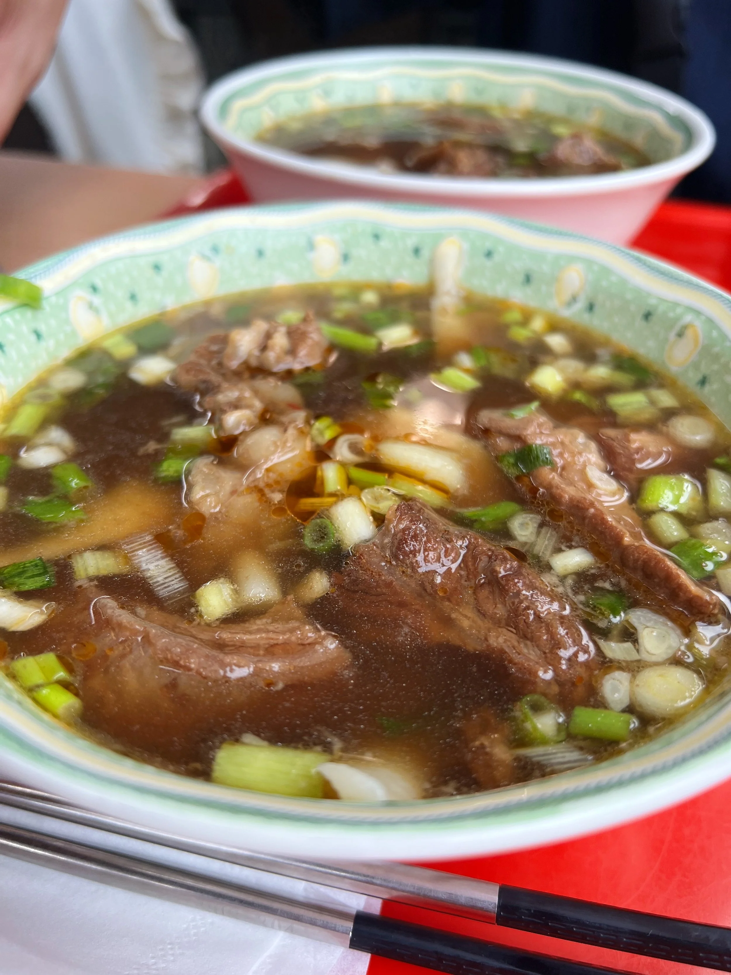You can’t visit Taiwan and not try any beef noodle soup so we’re on a quest to find the best ones. We ended up at Fuhong Beef Noodles (富宏牛肉麵) and got the beef noodle soup with intestines. Our group gave it a combined 7.5/10.