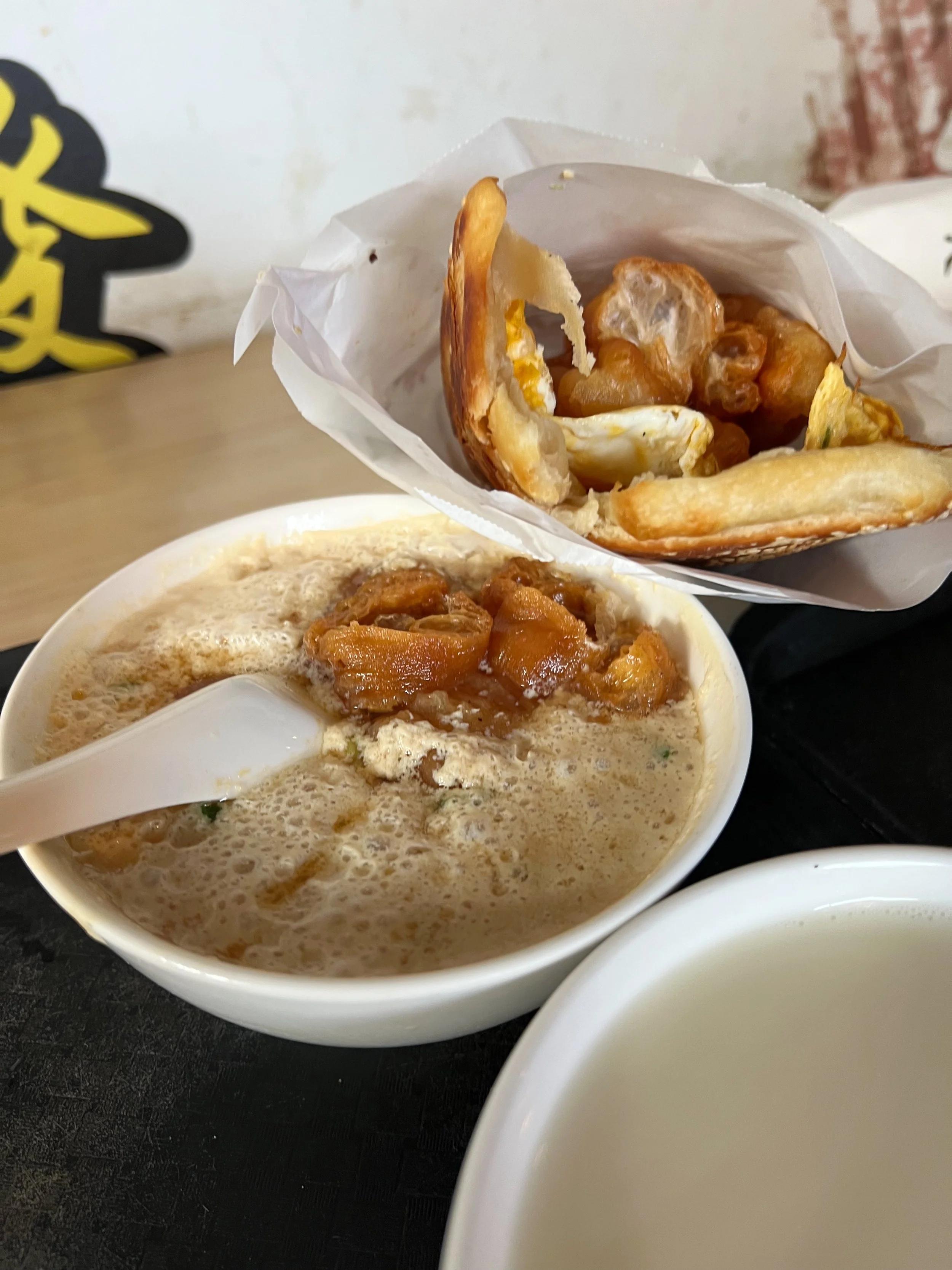 Last day in Taiwan means it’s the last opportunity to get soy milk breakfast. I got ready at 6:30 in the morning and a few of us biked over to Fuhang Soy Milk (阜杭豆漿). It’s located on the 2nd floor of a traditonal market (華山市場) and there was already a line on this weekday down on the ground floor. Definitely note down what you want to order as you wait as the ladies will rush you to place the order once you’re at the counter to get the lines moving. They have so many options on the menu and it’s hard to choose - and definitely over ordered and you can see our breakfast spread below. Their soy milks - both the sweet and savory - were great but I think my favorites were the egg in the fried dough (薄蛋夾油條) and rice ball (飯糰). Whatever we couldn’t finish we ended up taking back to our friends. Before biking back we saw a little takeout coffee spot and picked up some specialty coffee (I got charcoal latte) to bring back to the hotel.