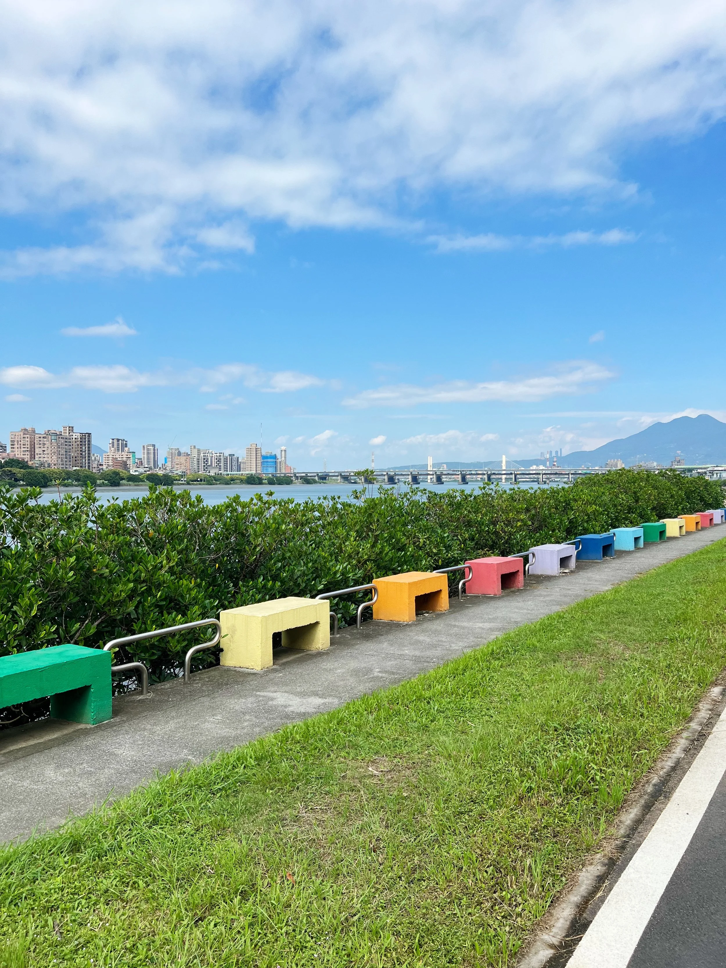 It was only 8:30AM when we got back from breakfast so while the boyfriend hit the gym (we have been eating a little too well) I decided to go on a bike ride with 2 other friends all the way to Tamsui River. We headed towards the district of Di Hua and made it to Yanping Riverside Park (延平河濱公園), a waterfront park that has bike lanes stretching along the Tamsui River. It was a beautiful day out and we spent about 20 mins in the park before biking back to the hotel.
