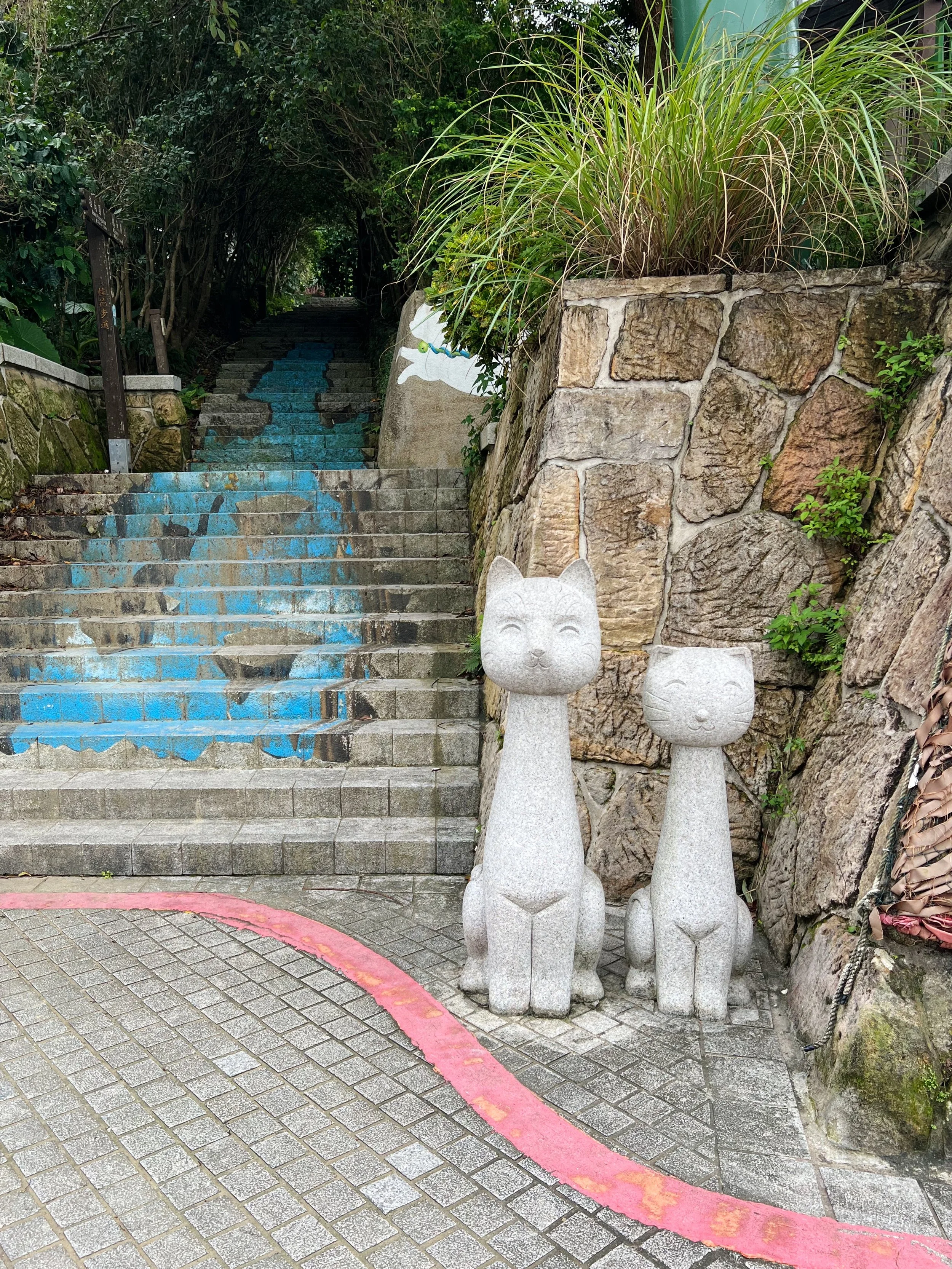 Once the rain died down a bit we paired up to write our wishes onto the sky lanterns - you get to select the background colors on all 4 sides, each color representing a specific wish. We tested out our penmanship as we write with an ink brush, wishing for happiness, prosperity, health and ways to retire early. The staff will help you take photos and videos, and let me tell they are great at giving instructions for posing! Before heading off to our next location we also checked out Jingan Suspension Bridge (靜安吊橋) on the other end of the Old Street.