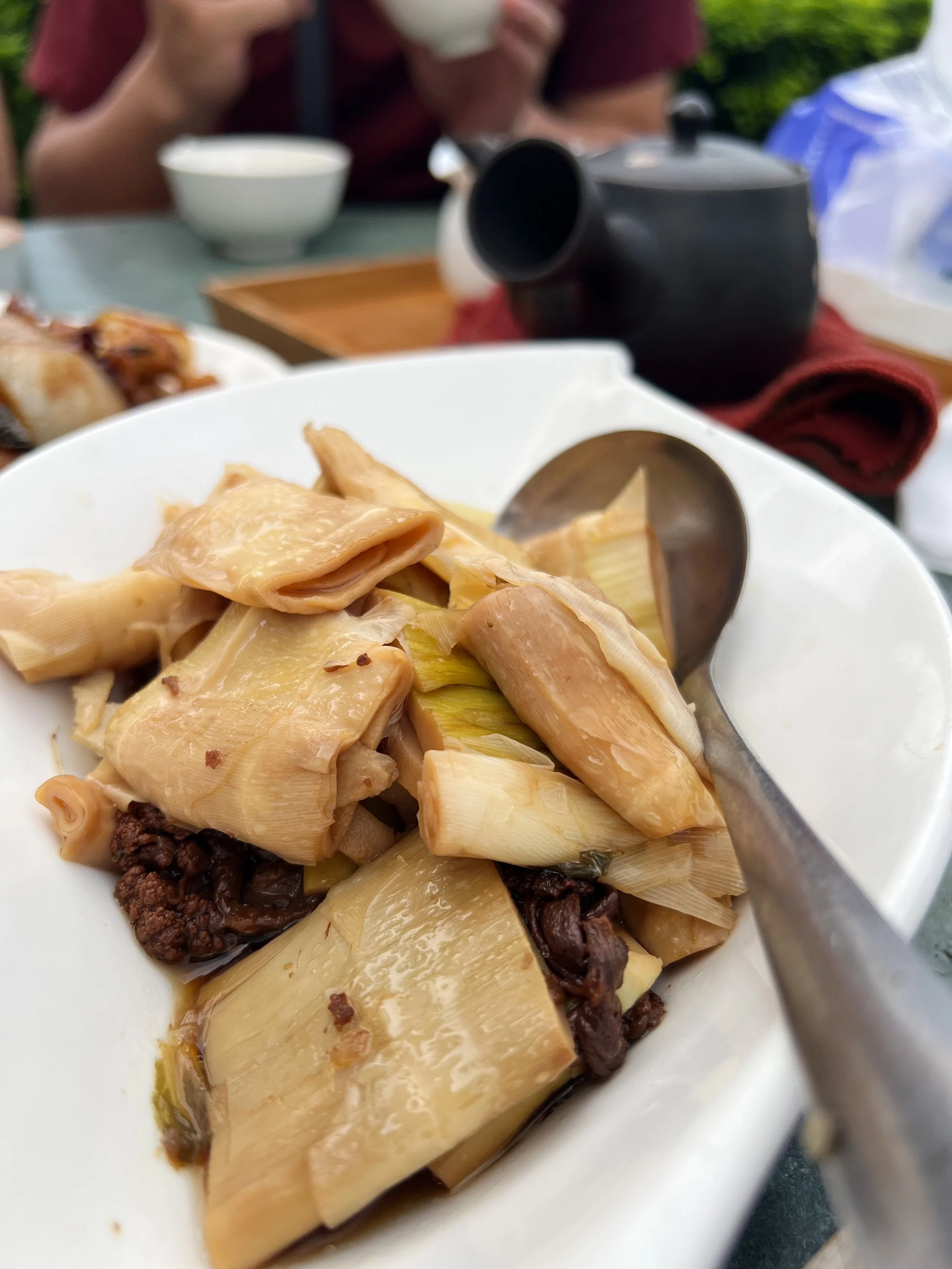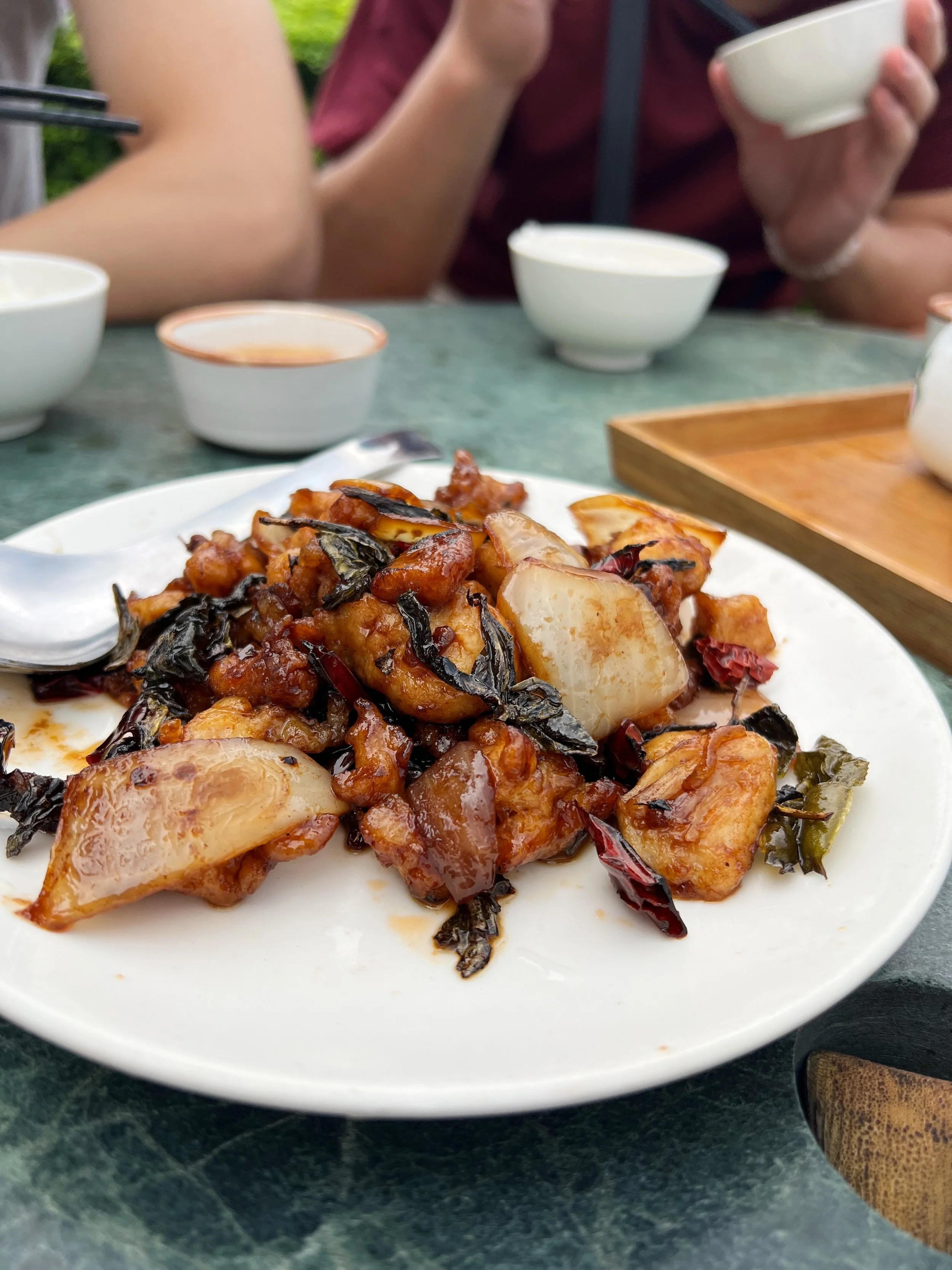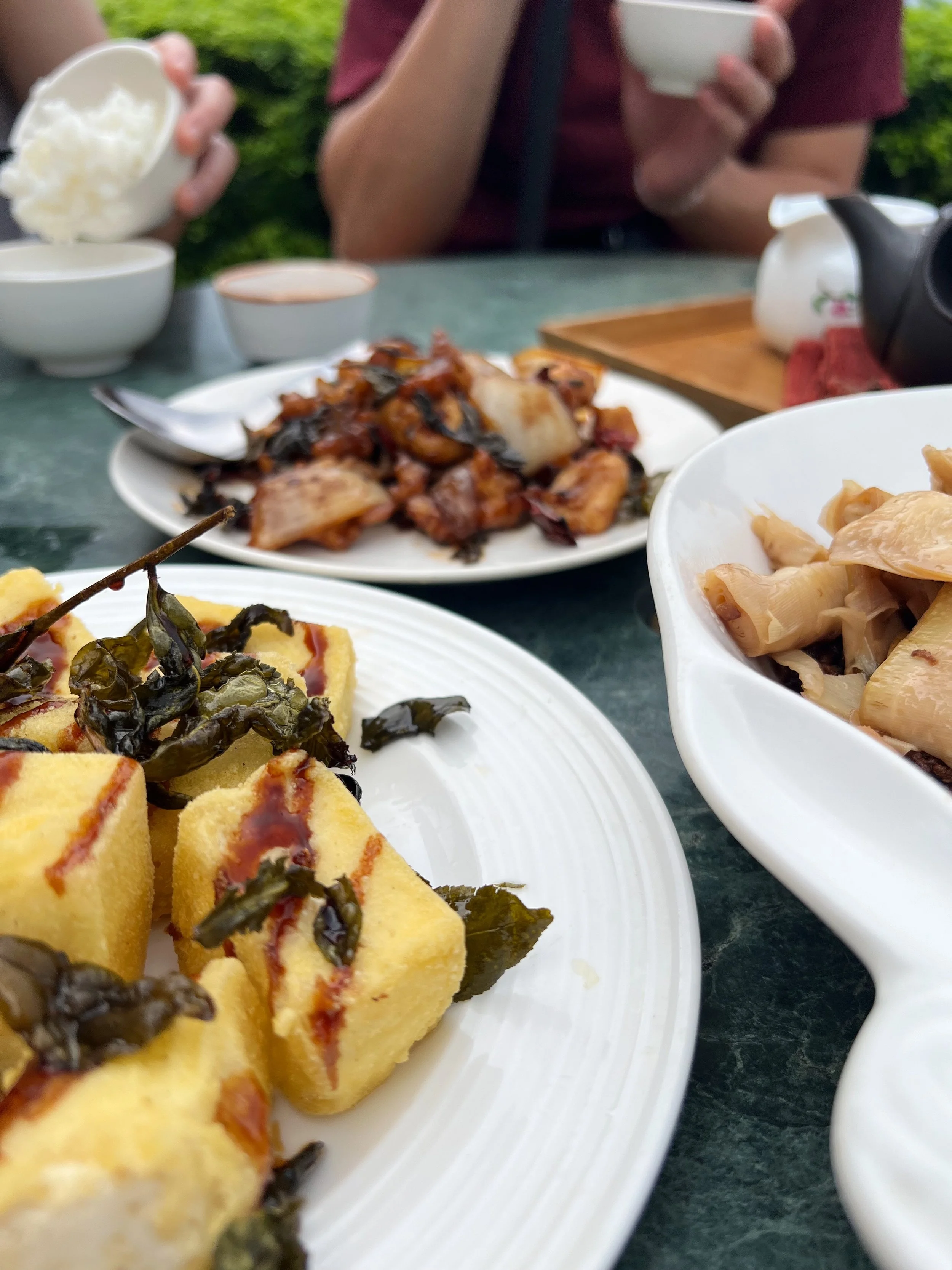 We spent about an hour and half at the hot springs and it was time for lunch! Our driver took us to Full Go Roast Chicken of Stone Kiln (福哥石窯雞) to try the local kiln baked chicken. The chicken was absolutely amazing, very juicy and tender and so good that we ended up ordering another one for the table. One of the other favorites from the group was the 糕渣, which is a type of fried milk dish. And guess what, the full feast only cost us $11 per person! Unfortunately I don’t have many photos of our feast as we devoured everything off the table.