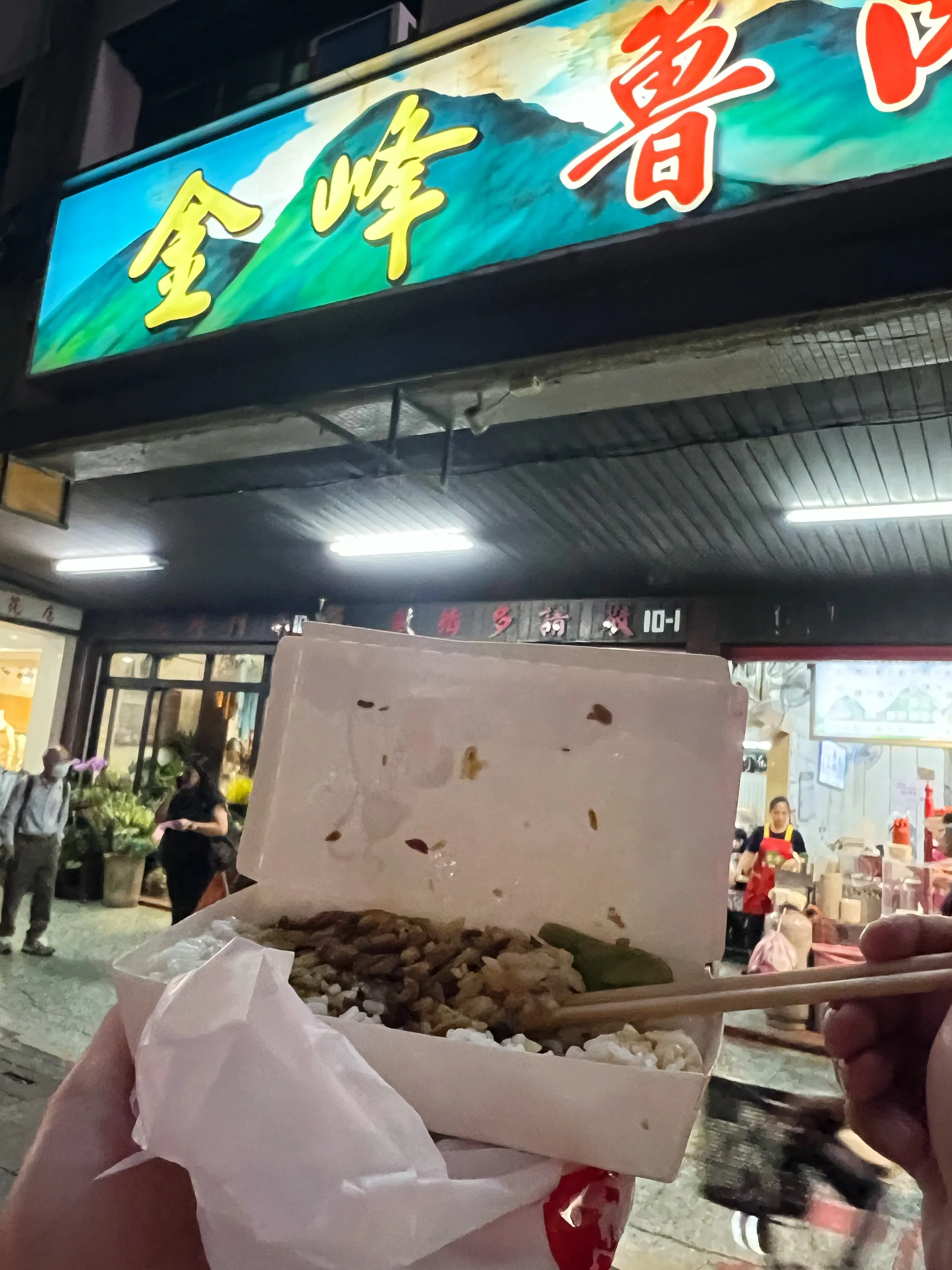 We realized we had spent too much time at Maokong so the group decided to skip the zoo and head to Taipei 101 for some more tea and snacks while my boyfriend and I ubered to the martial arts store to pick up the shoes he had been searching for. This time around we did manage to get them and on our way back we passed by Jin Feng Braised Pork Rice (金峰魯肉飯) and decided we had to give it a try. We ordered the braised pork rice to go and followed up with another order of the 肉焿油麵 which is actually a pork soup with noodles. We finished both dishes while standing next to the U-bikes as we were kinda in a rush but the meal did not disappoint. I actually thought the soup noodles were better than the braised pork rice!