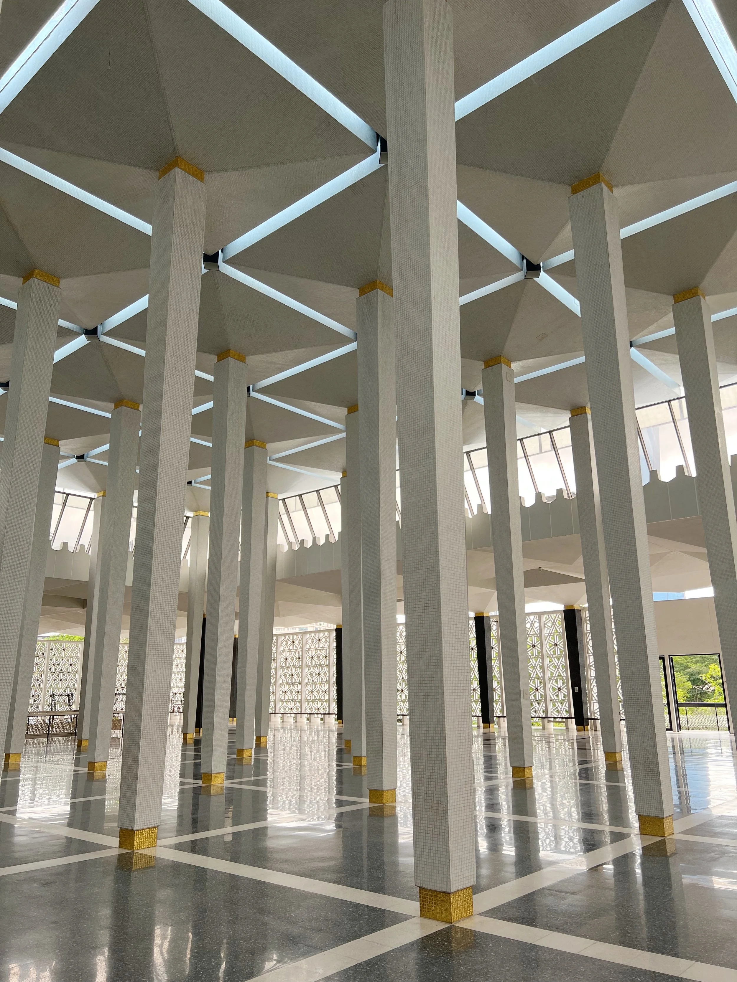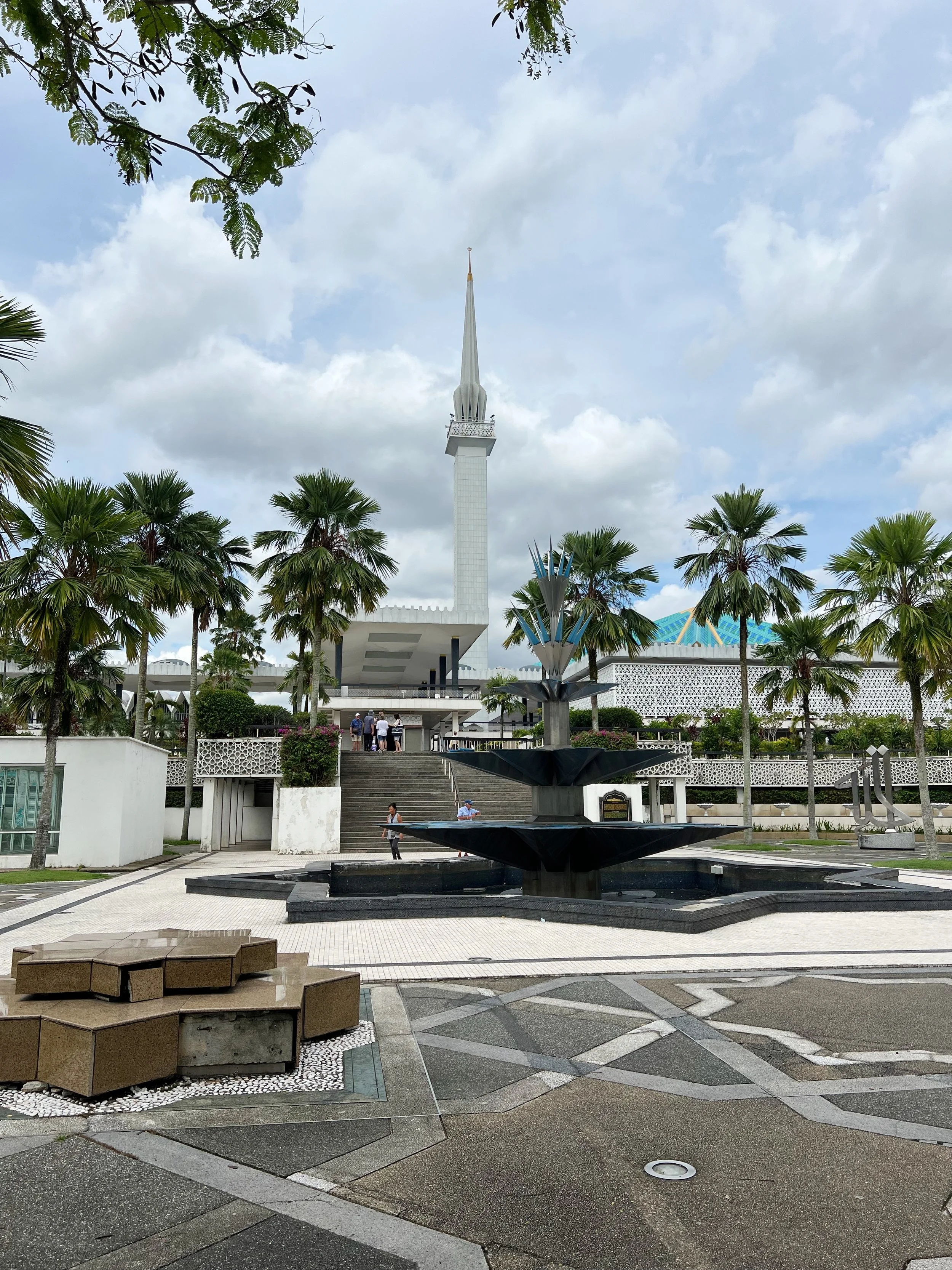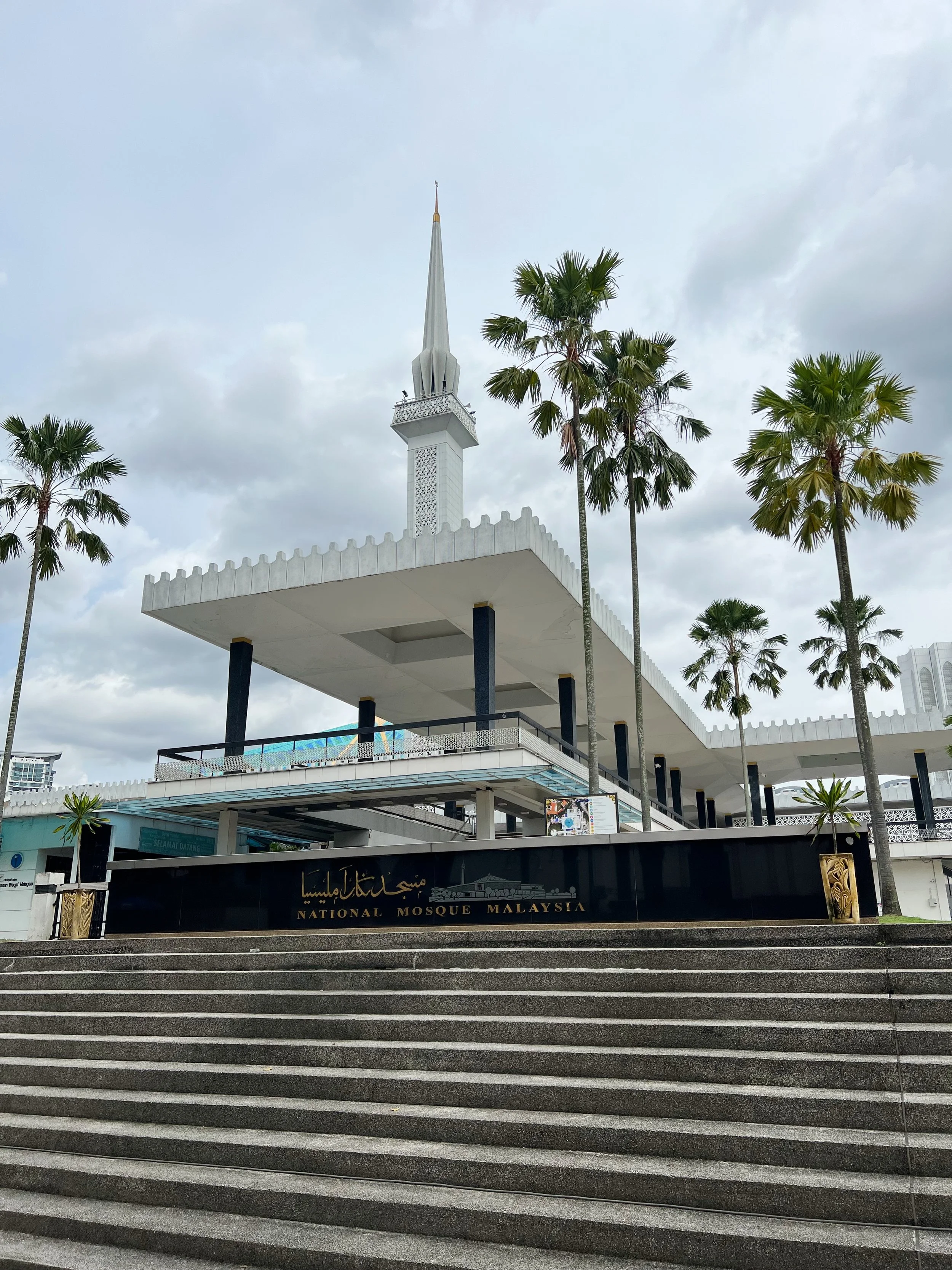 We took an evening flight from Hong Kong and by the time we arrived it was already really late. We called a Grab and made it to our hotel just before midnight. We were too tired to go out for food so we ordered room service, and the nasi goreng with the fried anchovies was surprisingly good. I don’t know if we’ve just be deprived of good room service in the US, but that dish really exceeded by expectation. The next morning our first activity was the National Mosque. The mosque was completed in 1965, and underwent renovations and extensions in 1987.