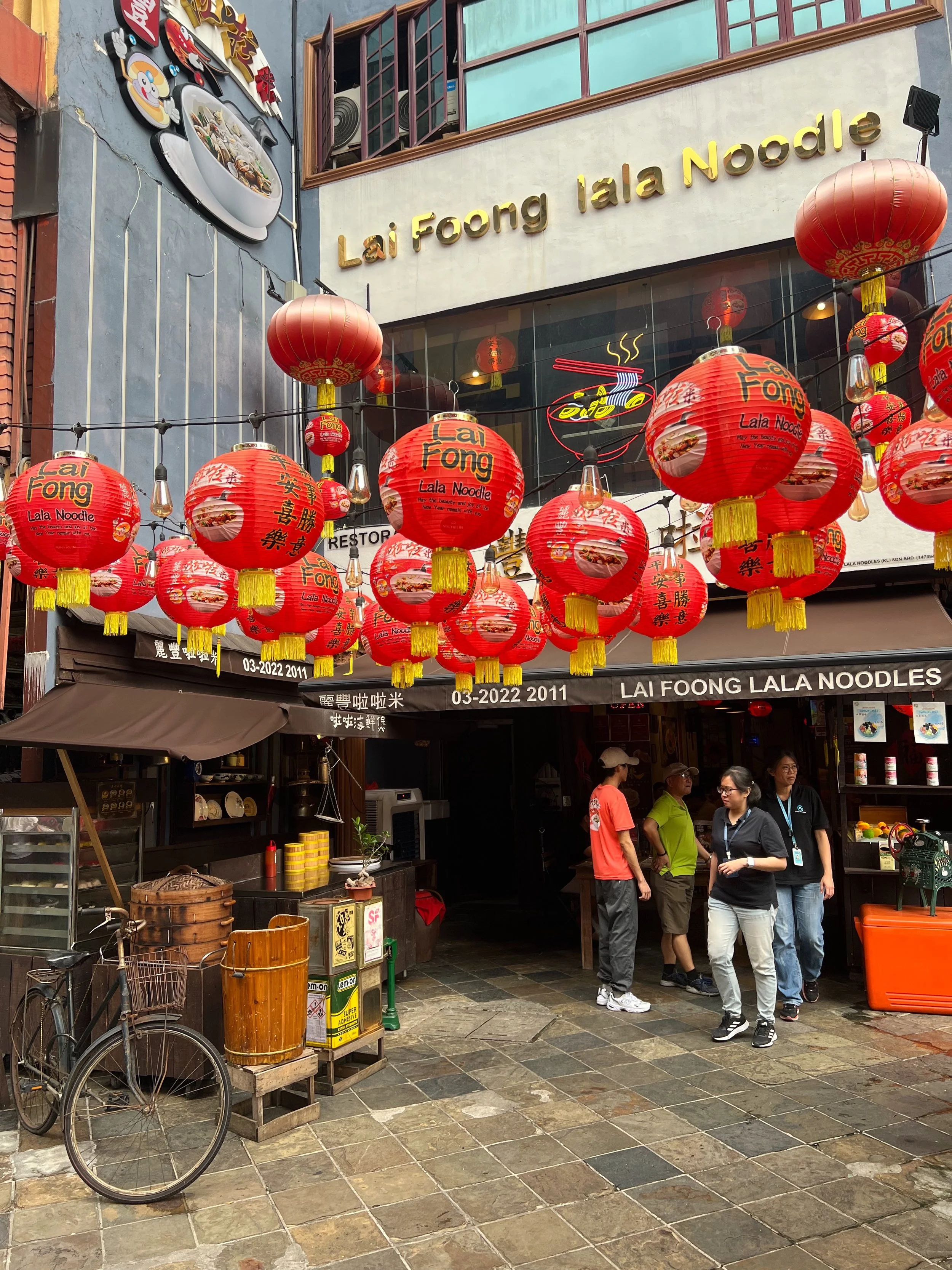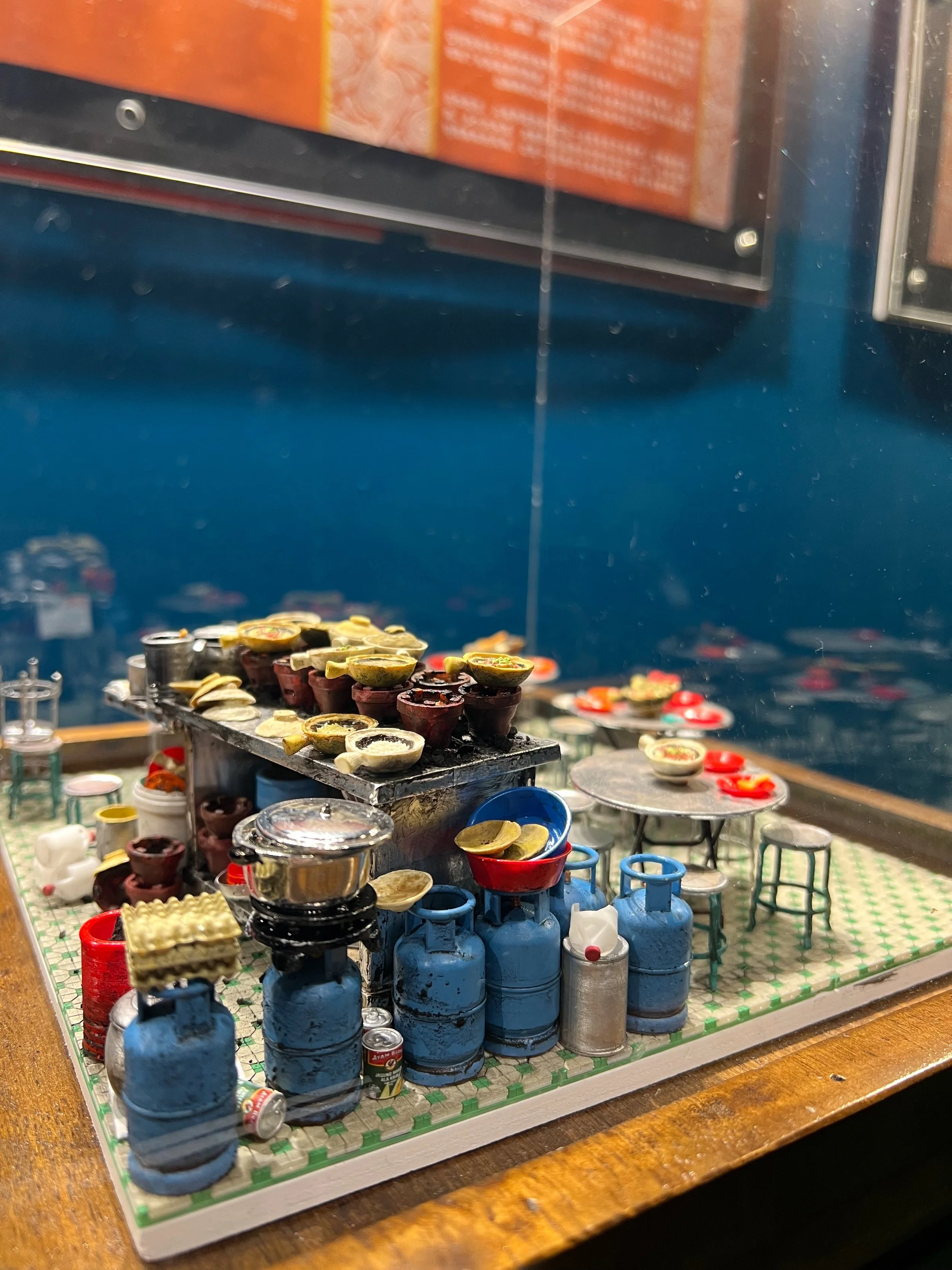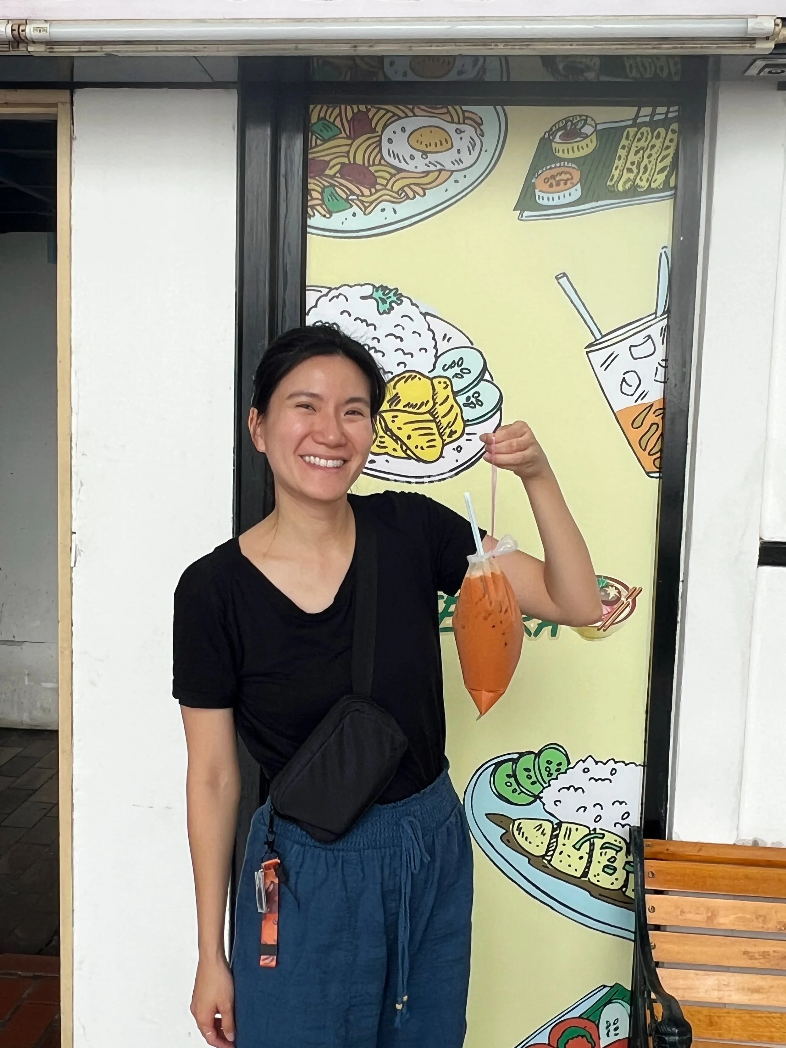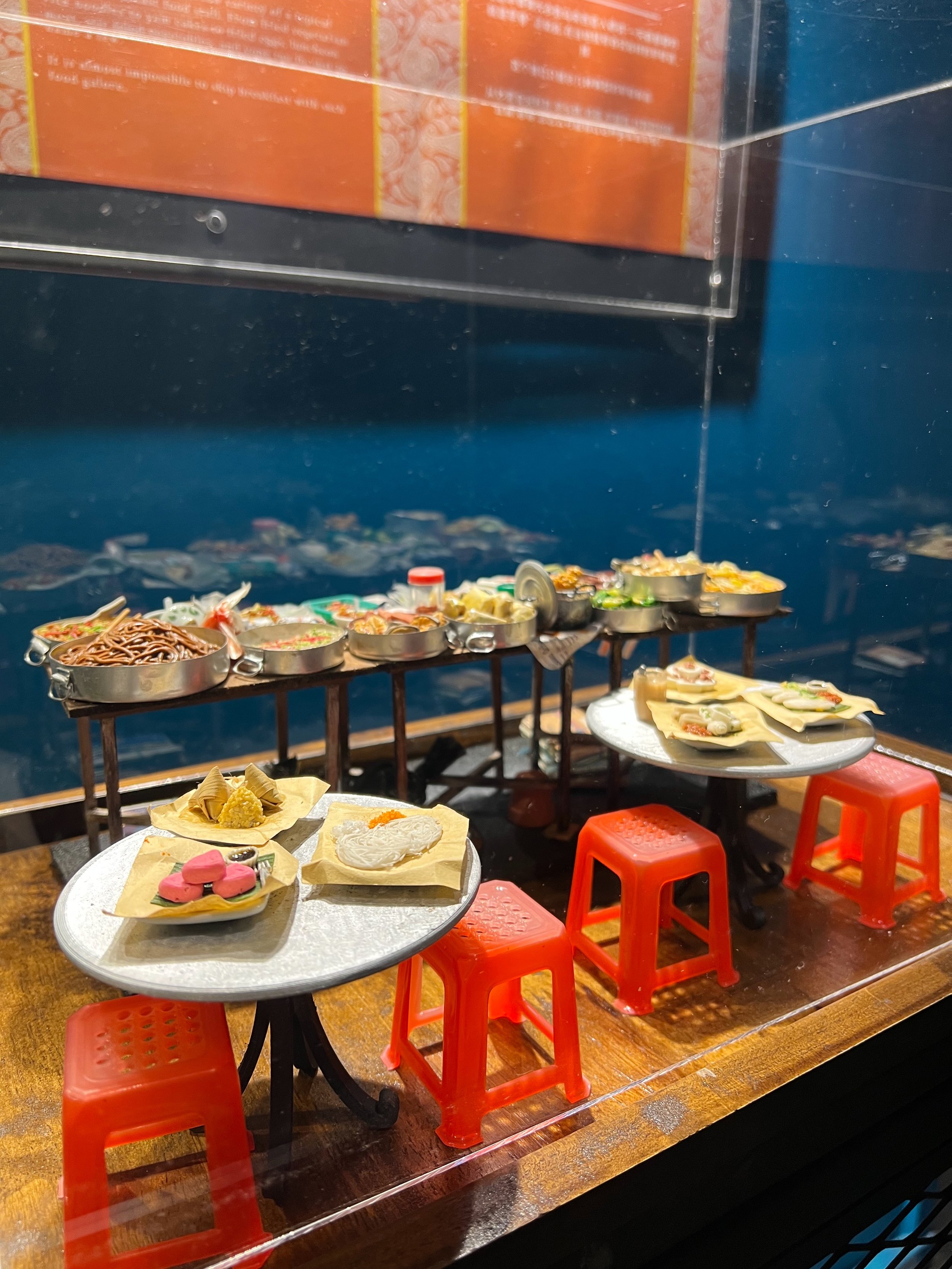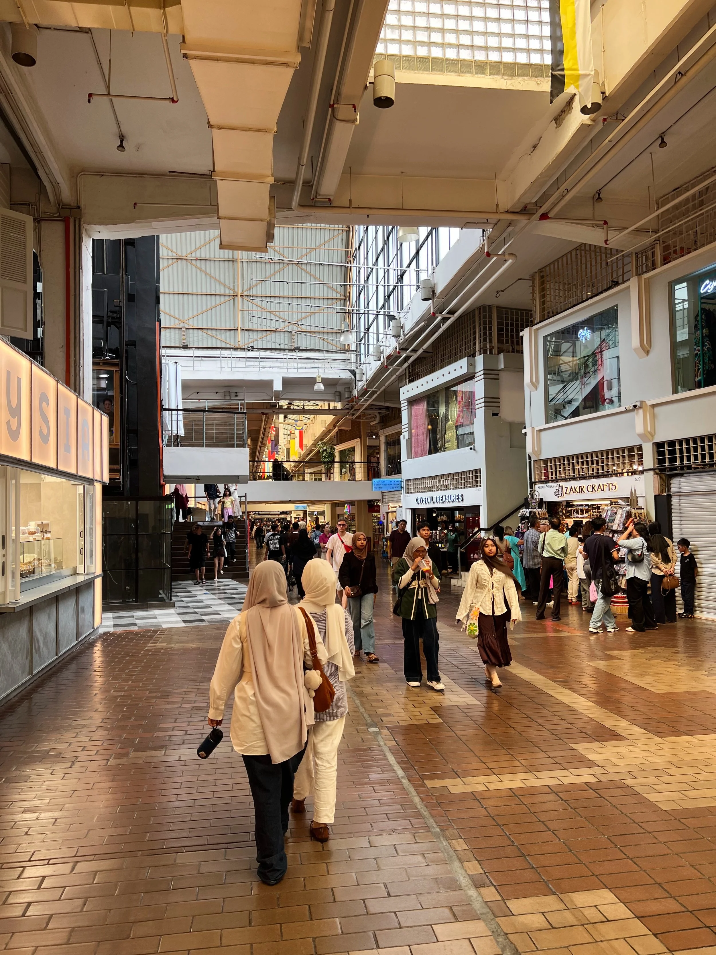 Post lunch we headed to Central Market, the iconic blue building built back in 1888 as a wet market. It has now turned into a cultural center with boutique shops and it’s a great spot for shopping for souvenirs. Not surprisingly I spent a lot of time here shopping for postcards, magnets and other small gifts. One store has a DIY layering stamp postcard where each stamp is a single color and layering the different stamps creates an image of the iconic KL landmarks. Another stall has a Gacha machine for the iconic Malay tea to-go lanyard (it was cat themed and I couldn’t resist). After shopping in the main floors we went onto the top floor and discovered a food court and decided to try the actual Malay tea to go, served in a plastic bag tied with a string and with a straw. The teh ais (iced tea) was delicious and so cheap!