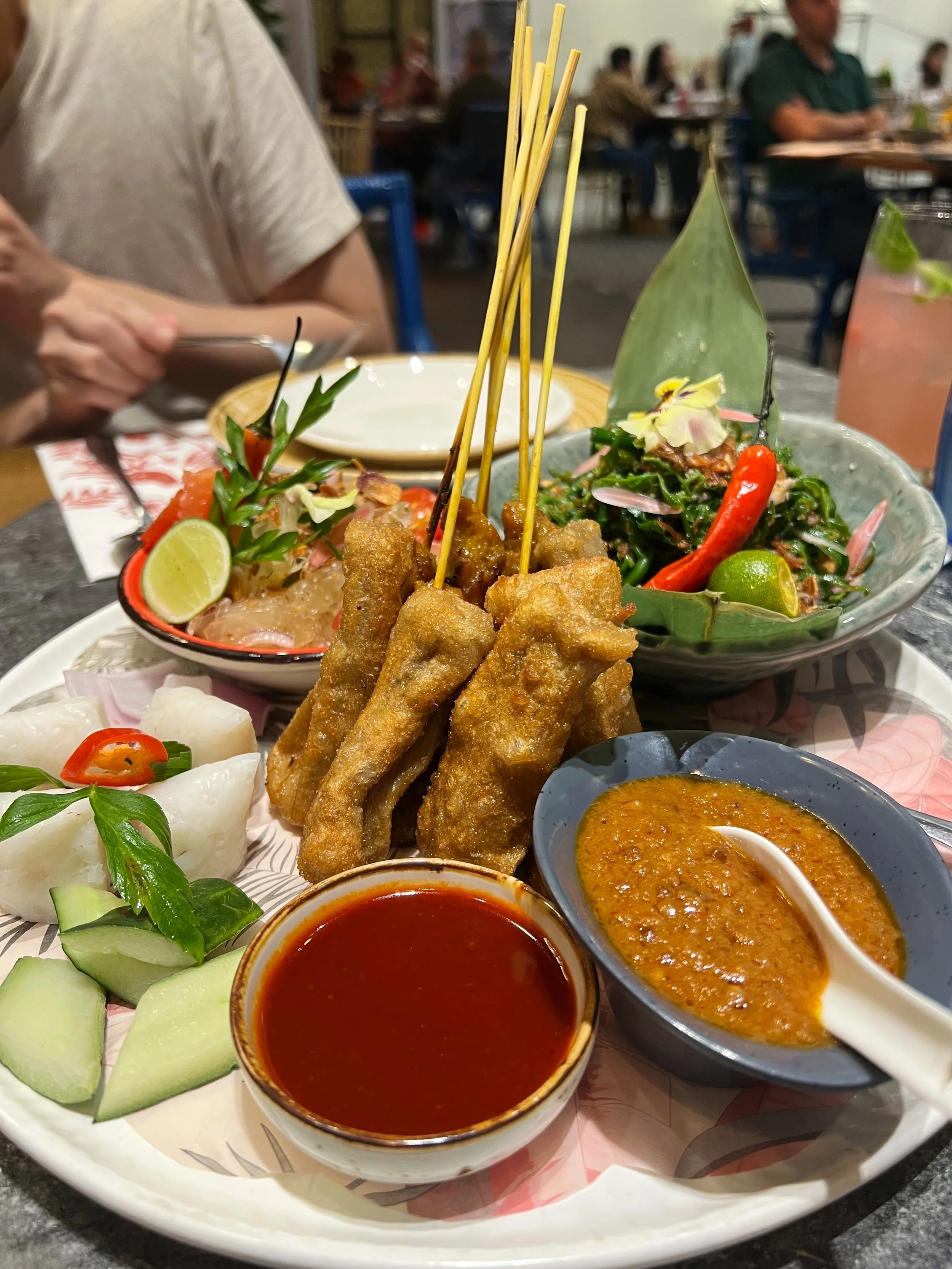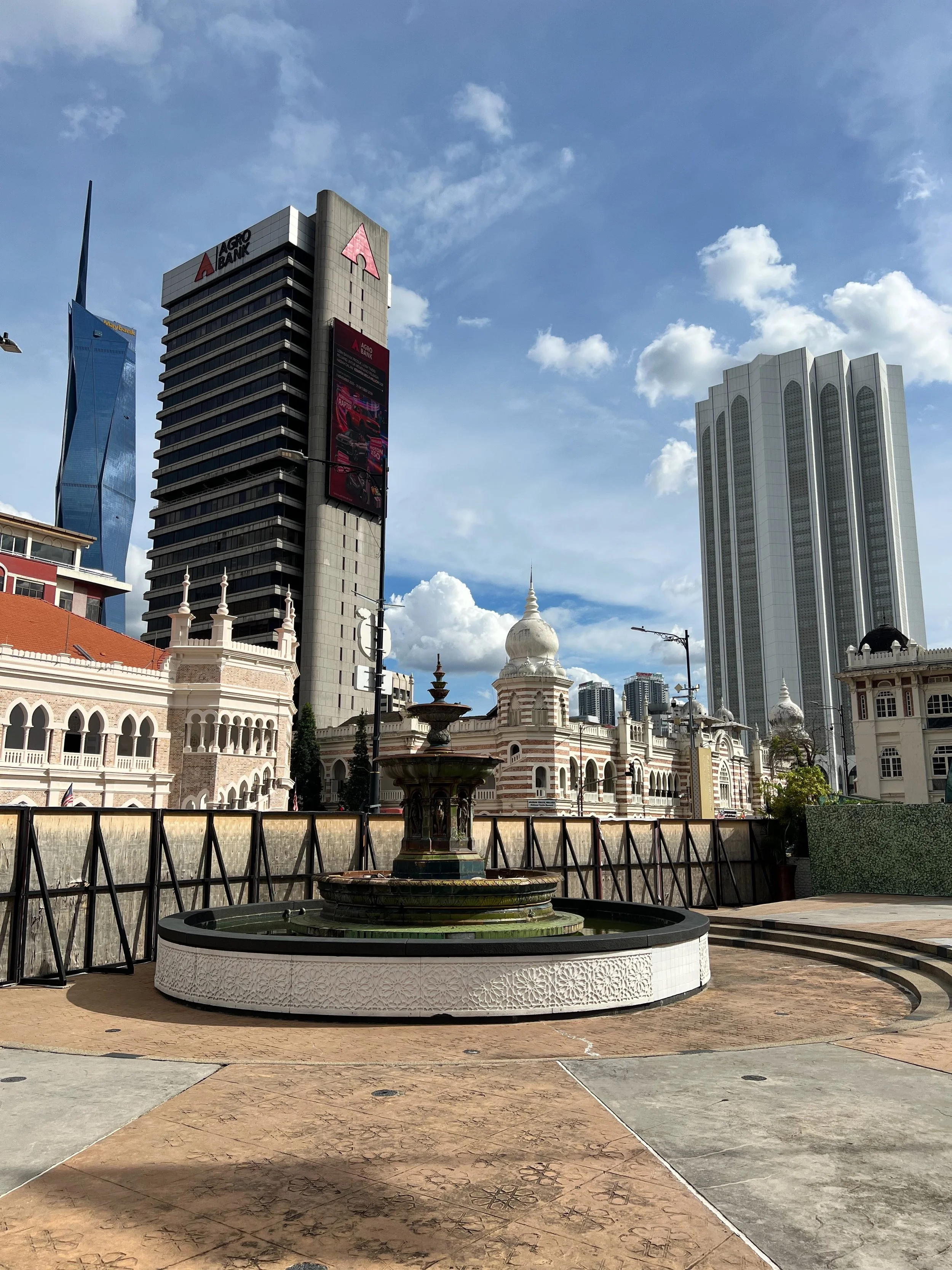 From Central Market we walked over to Merdeka Square (Independence Square), but the iconic Sultan Abdul Samad Building by the square is undergoing renovations and it was completely covered up 😅. We still spent a little time there and went to an exhibit at the public library, and then called a car to get an early dinner.