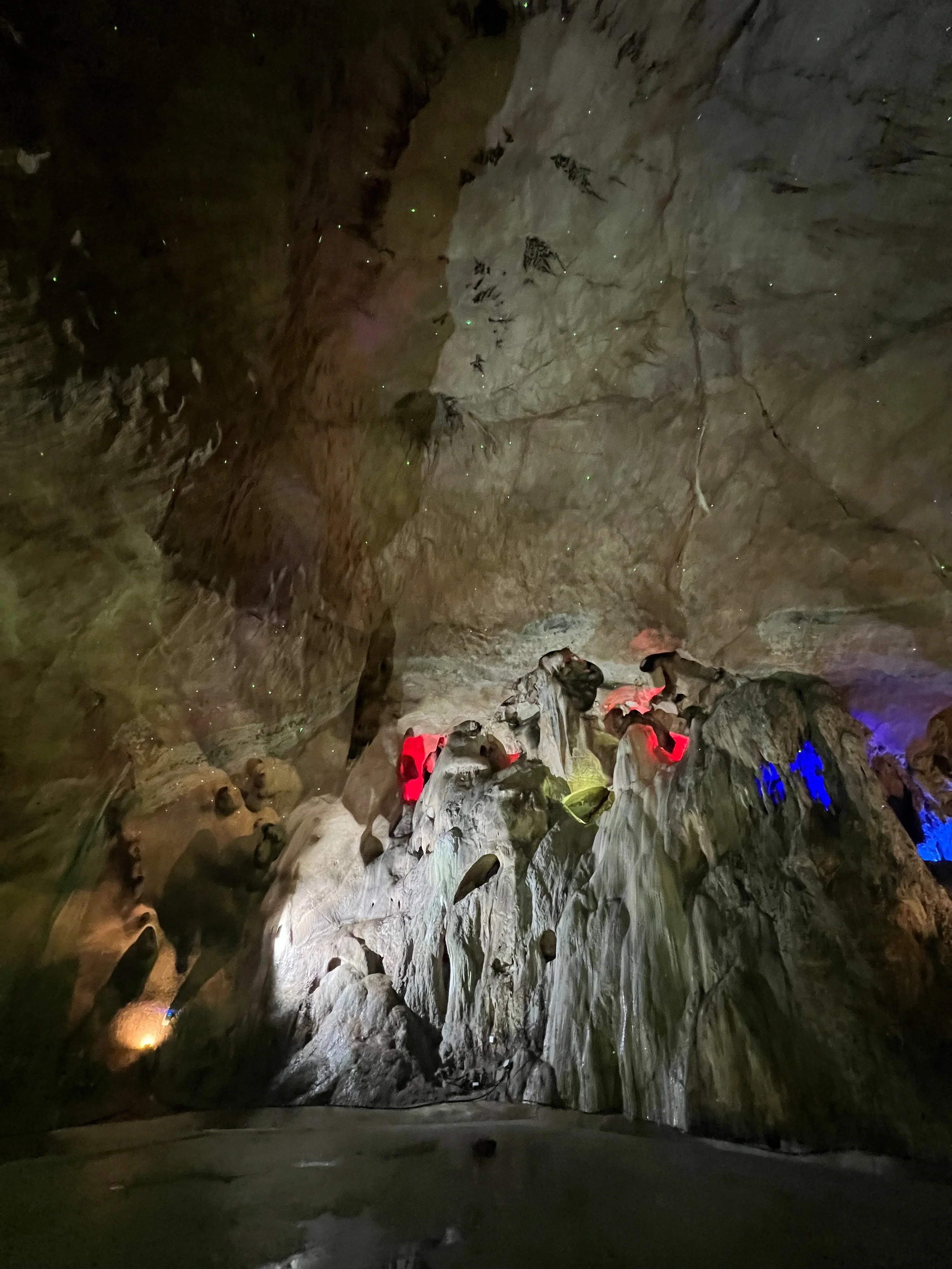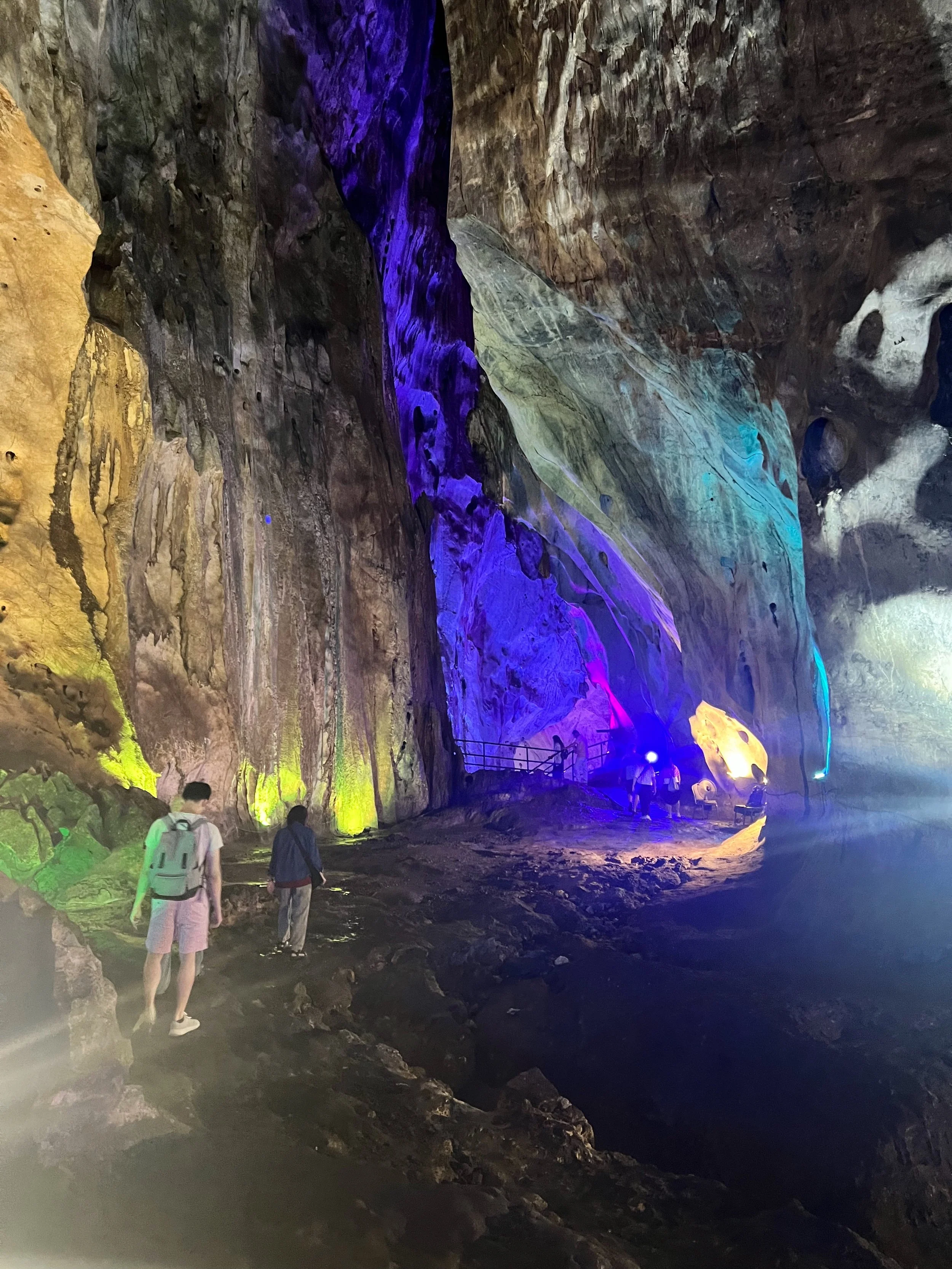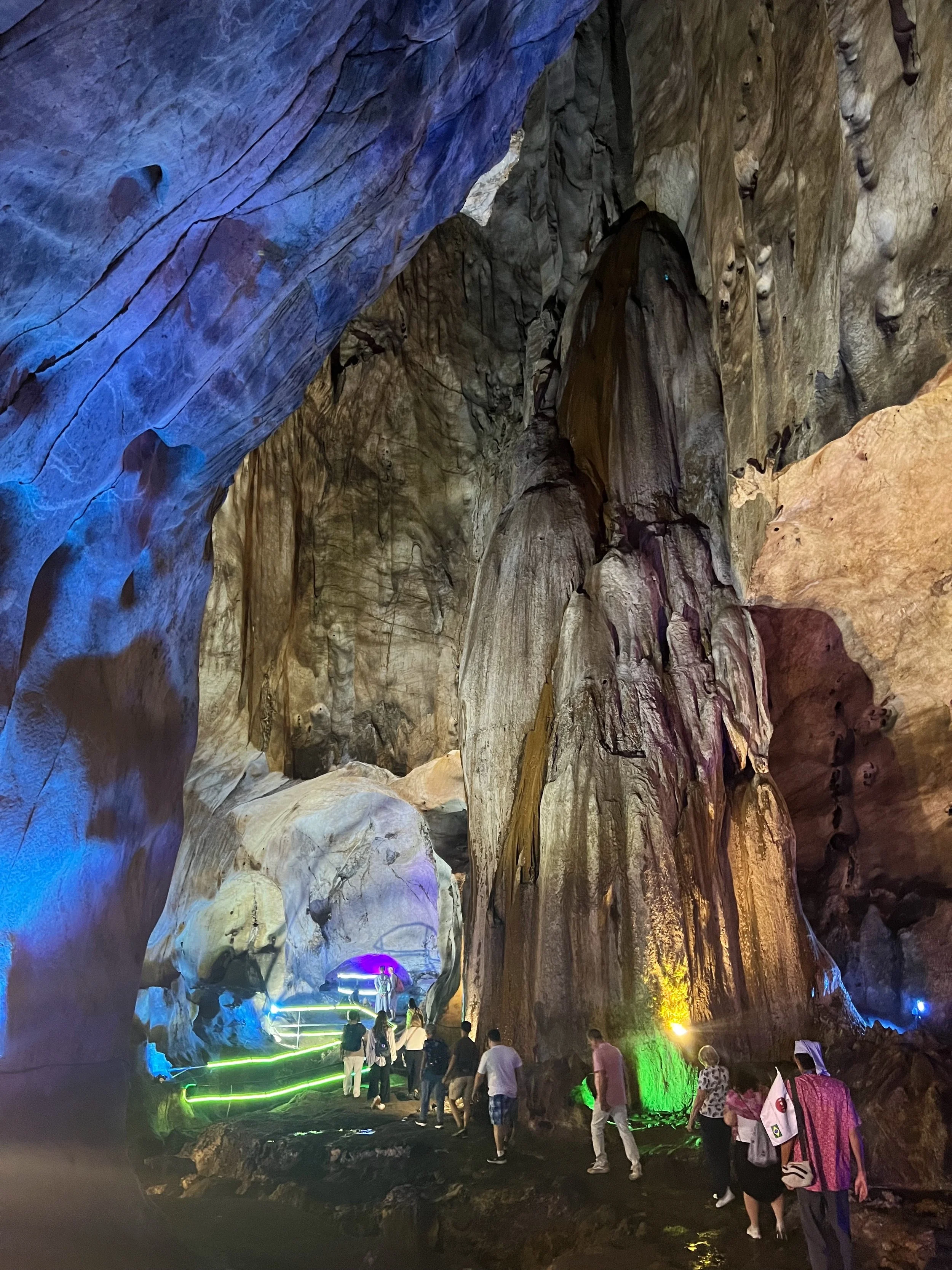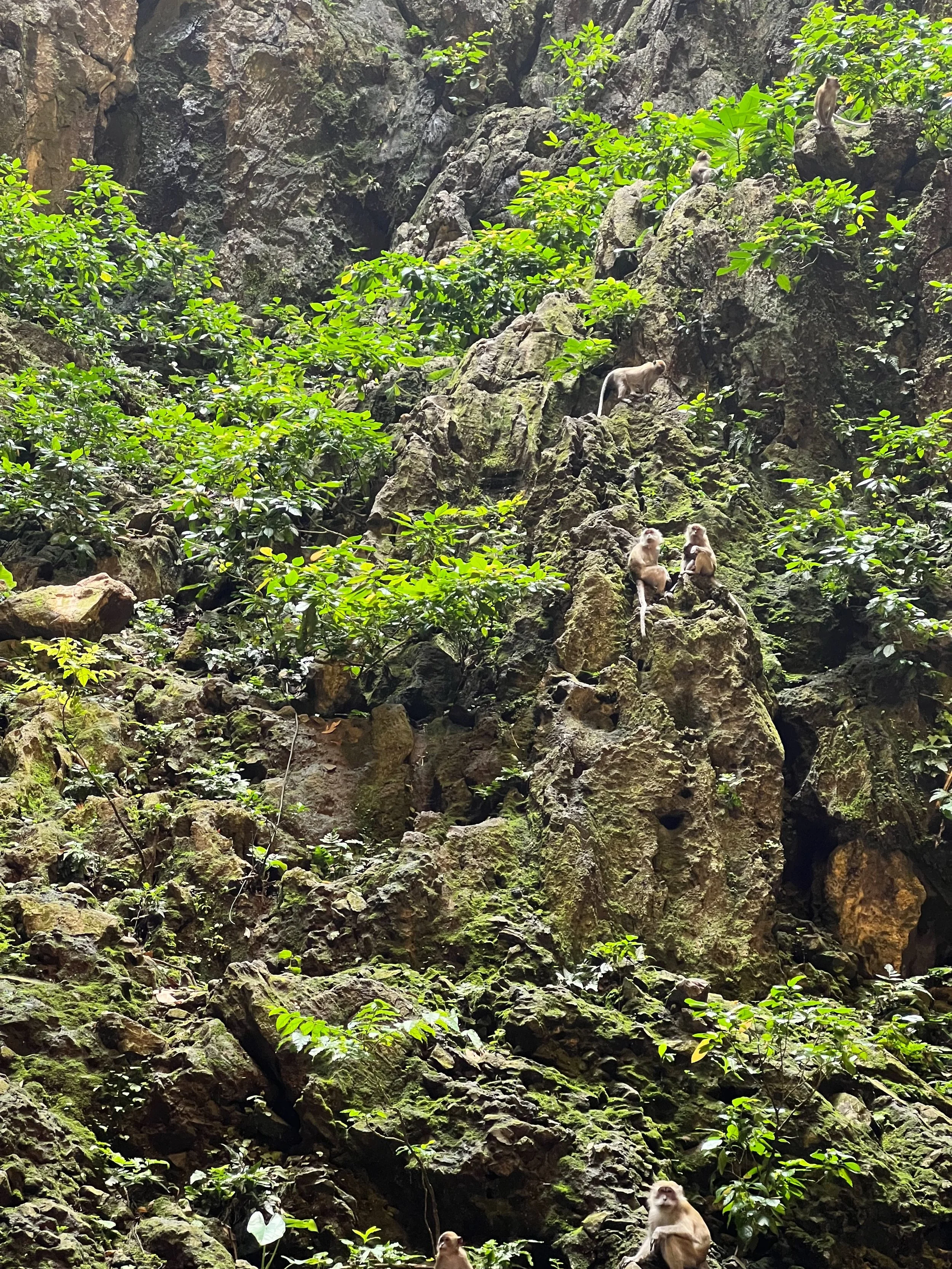 It’s my brother’s birthday and we’re celebrating in KL! We’re switching hotel today from one side of the city to another so we packed up our bags and stored them at the hotel before heading to our first stop of the day, the Batu Caves. It’s series of limestone caves and temples located north of Kuala Lumpur, and most people recognize it by its colorful stairs leading up to the caves, as well as the monkeys that called the caves home. I wished I had done a little bit more research about this place before visiting because as soon as you enter from the ride share drop off location, there is Hanuman, the Hindu God of wisdom and courage, and the entrance to the Ramayana Cave. I had initially mistaken that as part of the Batu Caves, but it’s a separate but complex cave systems that is also worth exploring. The Ramayana Cave features lots of sculptures and murals, as well as a waterfall and a temple all the way at the top of the caves. Perhaps my only complain is the somewhat tacky lighting they’ve chosen for the caves.