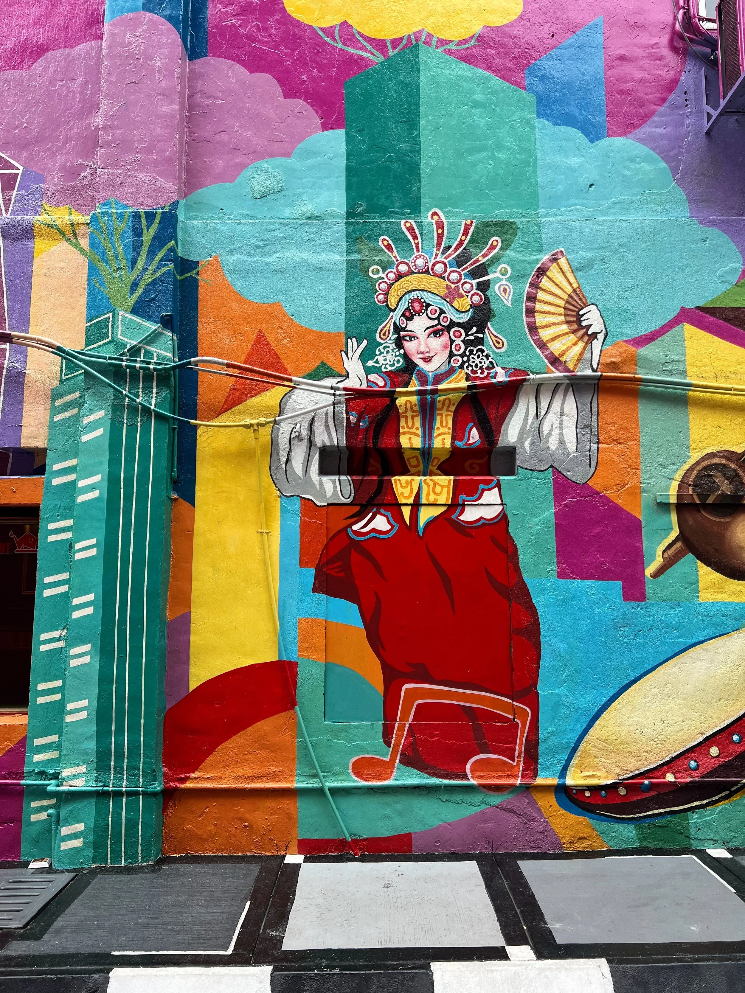 We spent a little more time in the Chinatown area, on Jalan Sultan. In the middle of the street is an alleyway full of murals.
