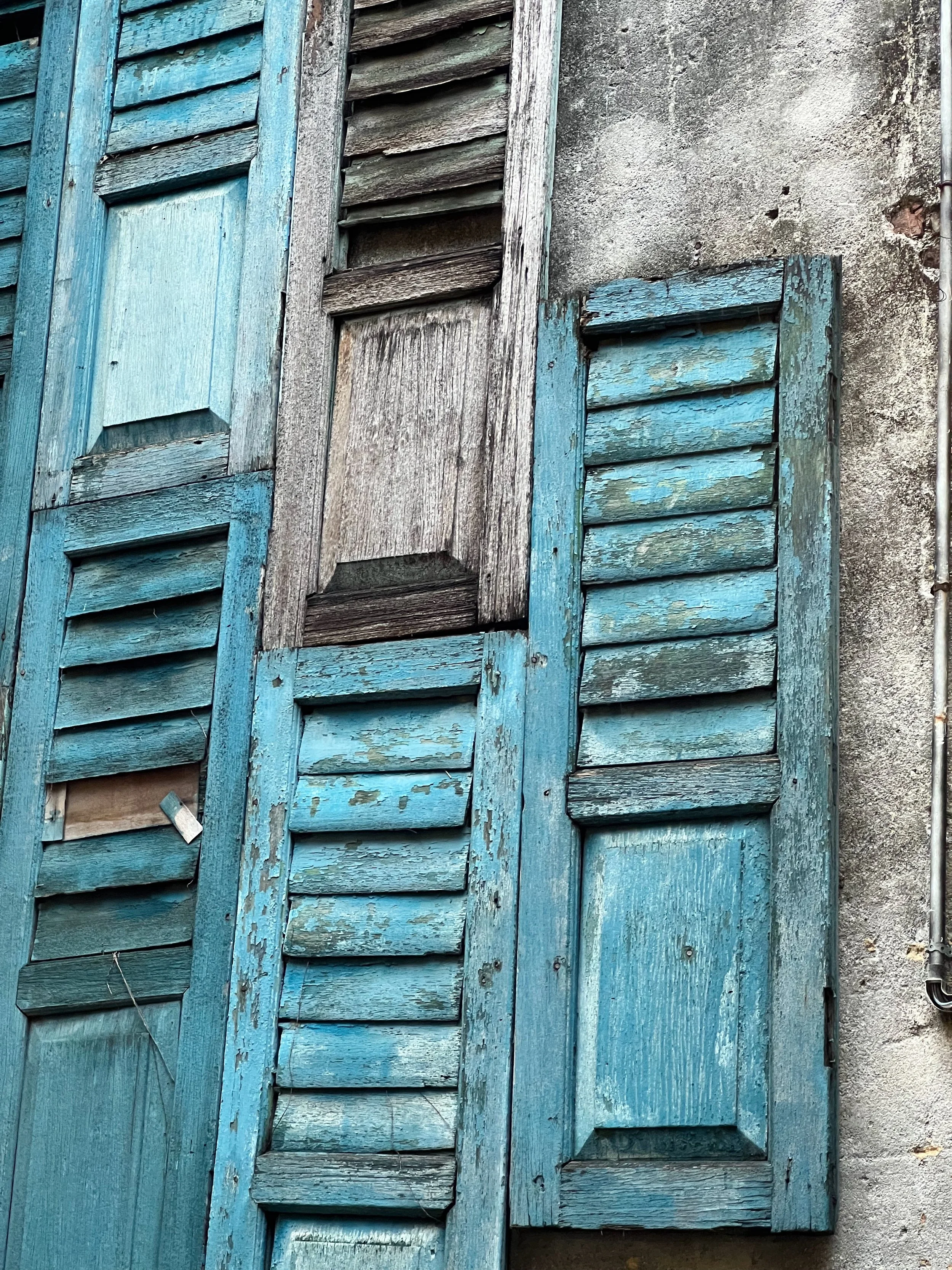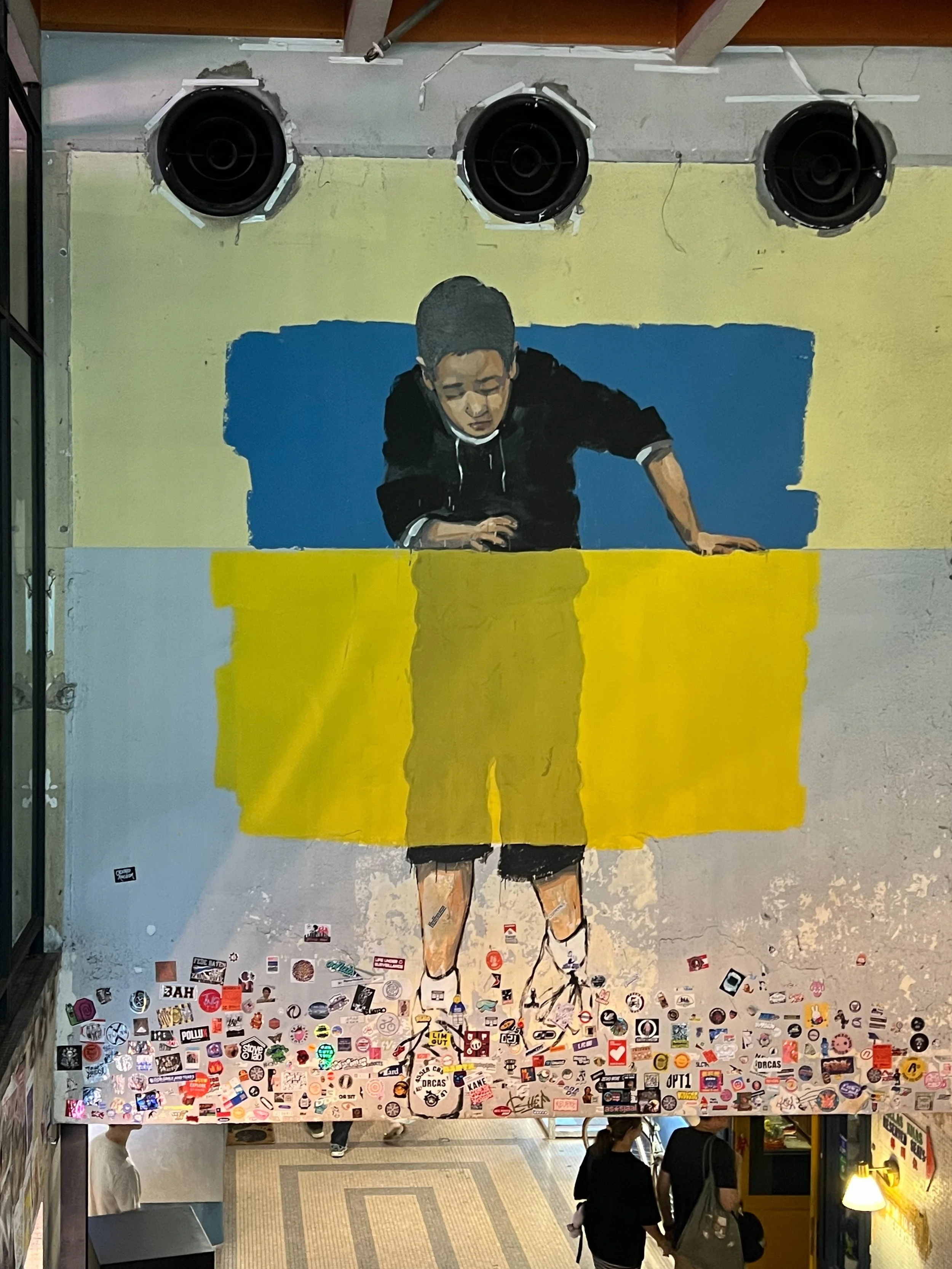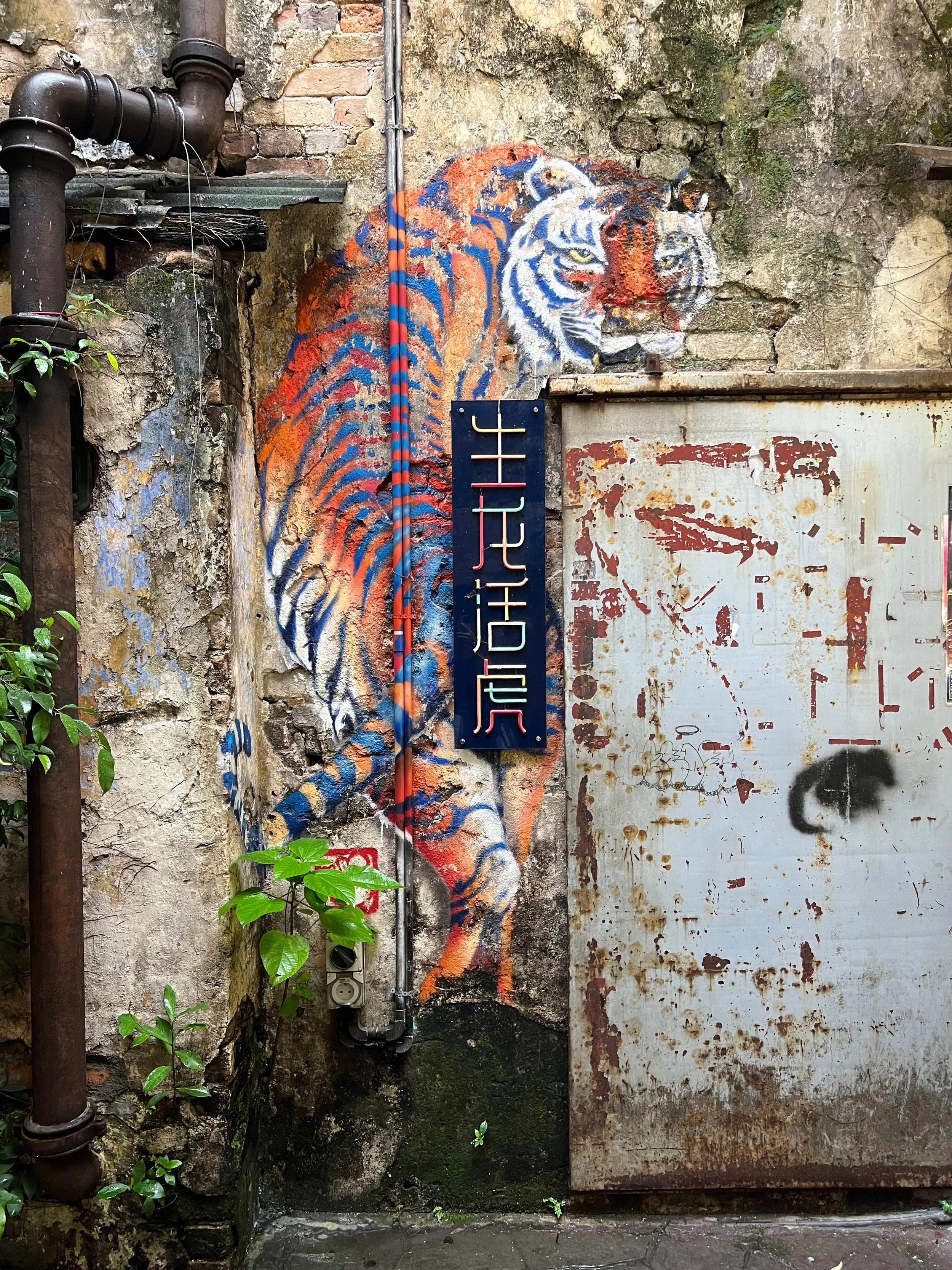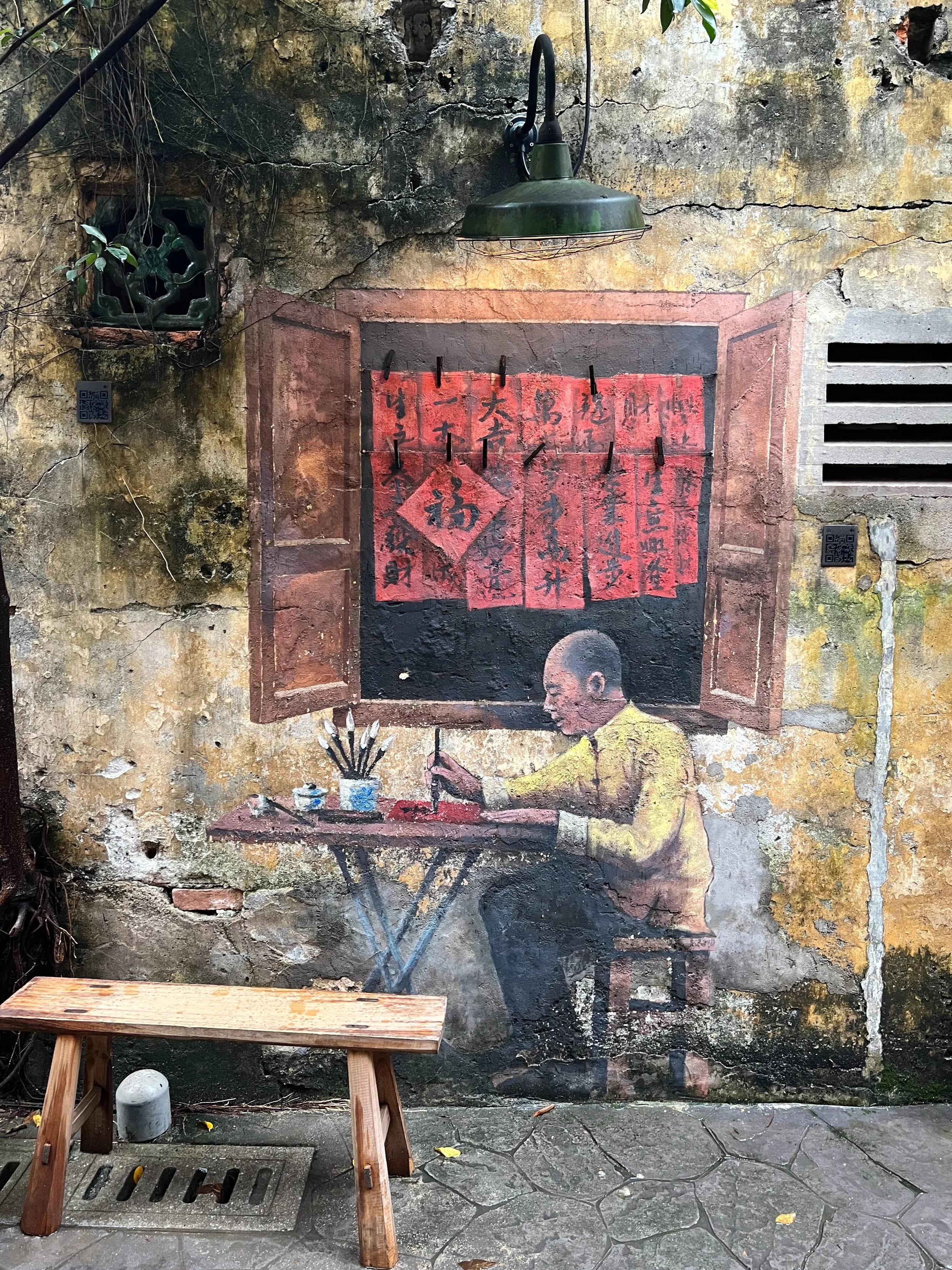 Kwai Chai Hong, a back alleyway full of street art and murals was just one block away so we decided to check it out. The rain had mostly died down by now so we were able to get some good photos. A cat outside a batik store drew me in and I ended up getting myself a nice outfit.