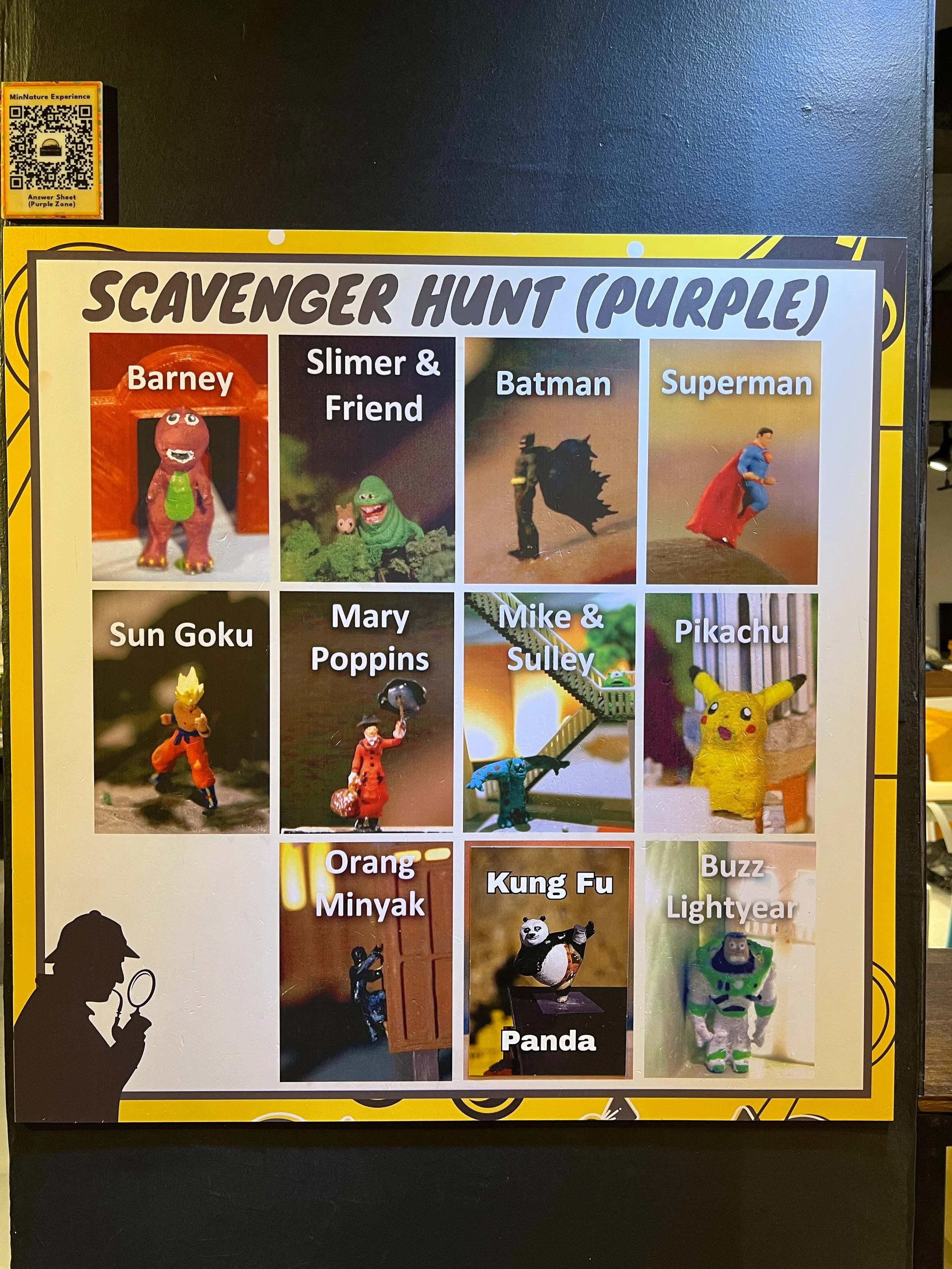 After the early lunch, we headed for the perfect rainy day activity that was MinNature Malaysia, a large exhibit that features everything Malaysia in 3D miniatures. We ended up spending a lot of time there as we were doing a scavenger hunt for the mini figurines. There are trains that you could activate and light shows as well, and I loved seeing all the famous landmarks for KL as well as those of other Malay cities.