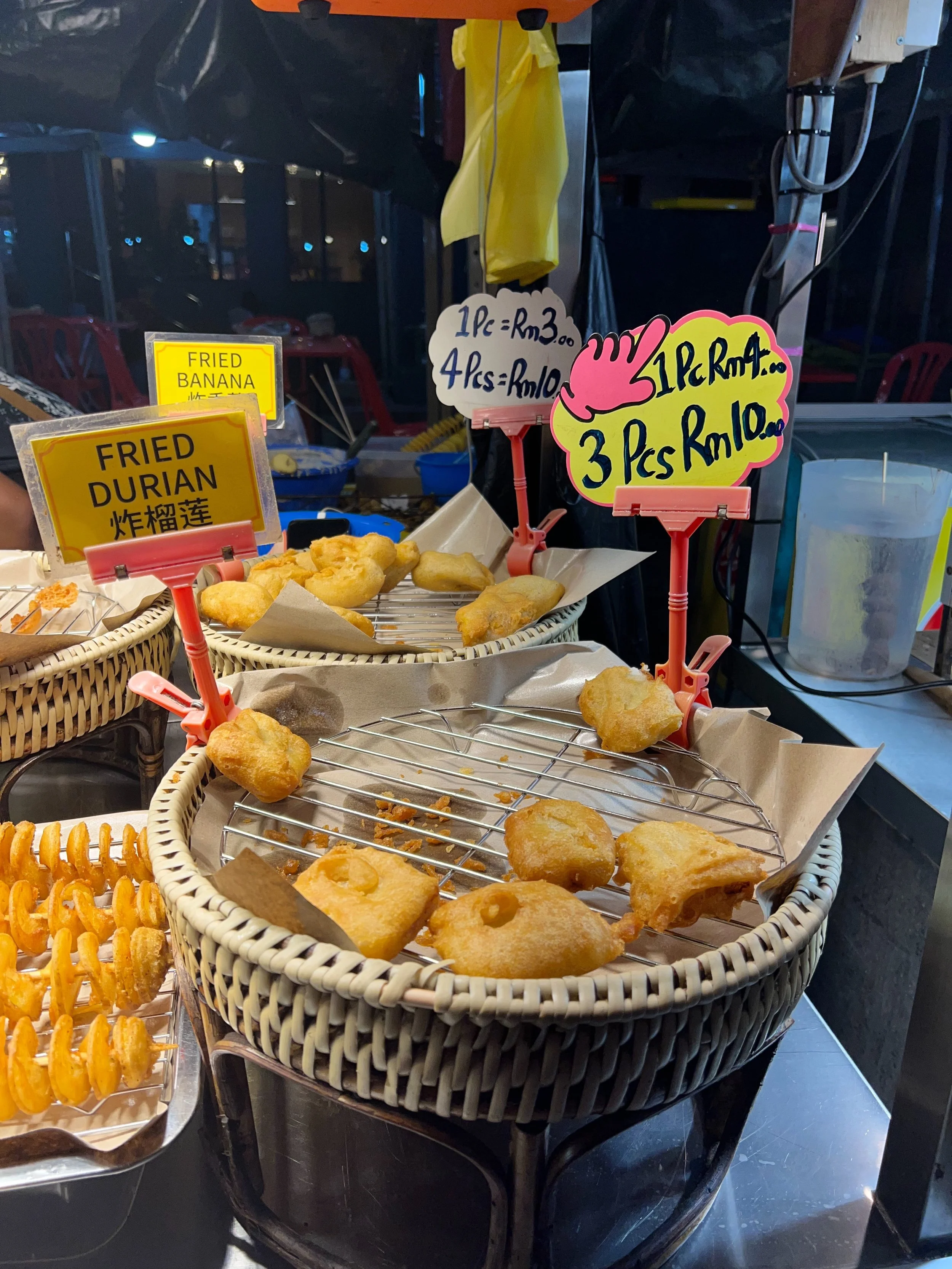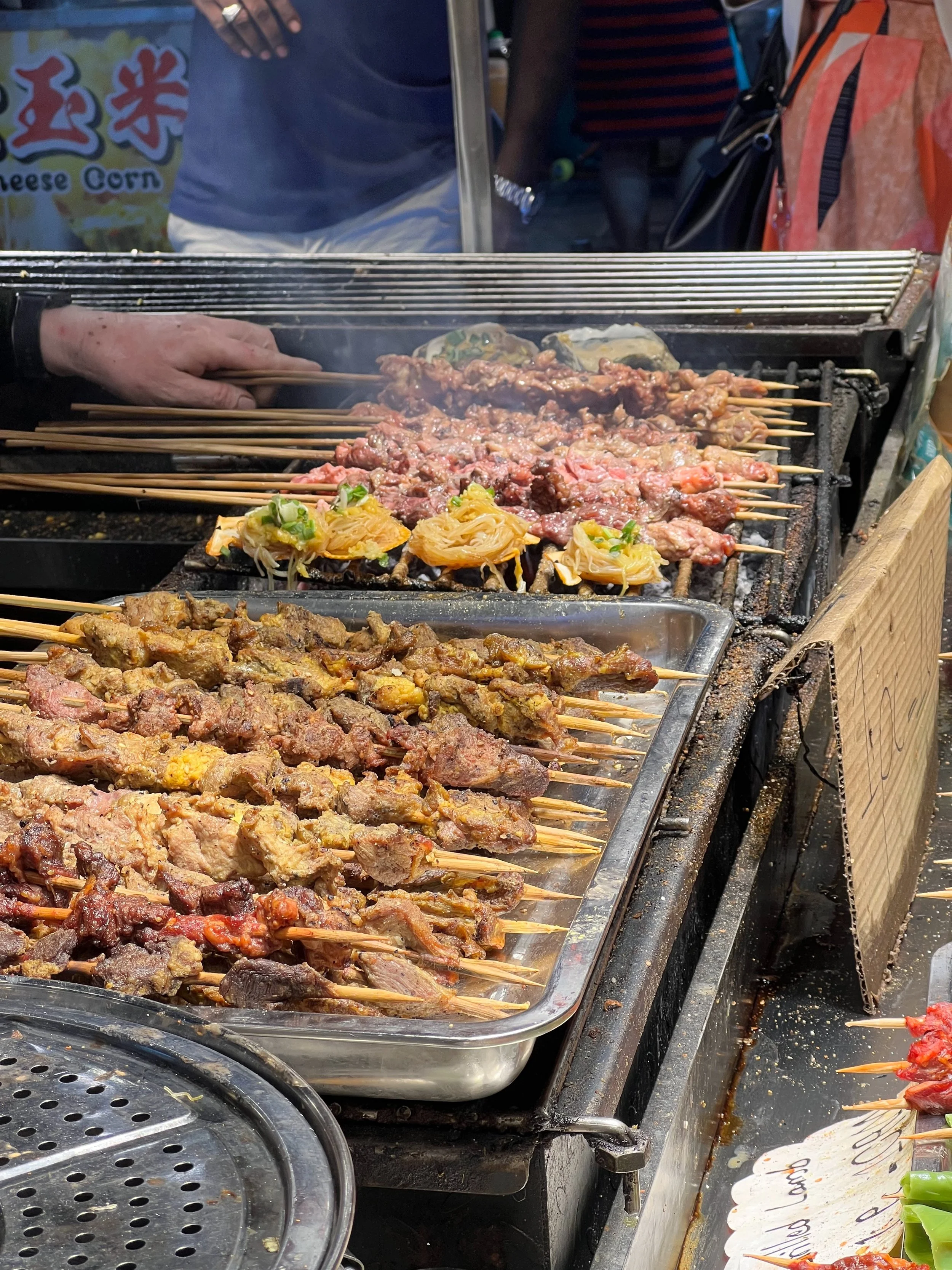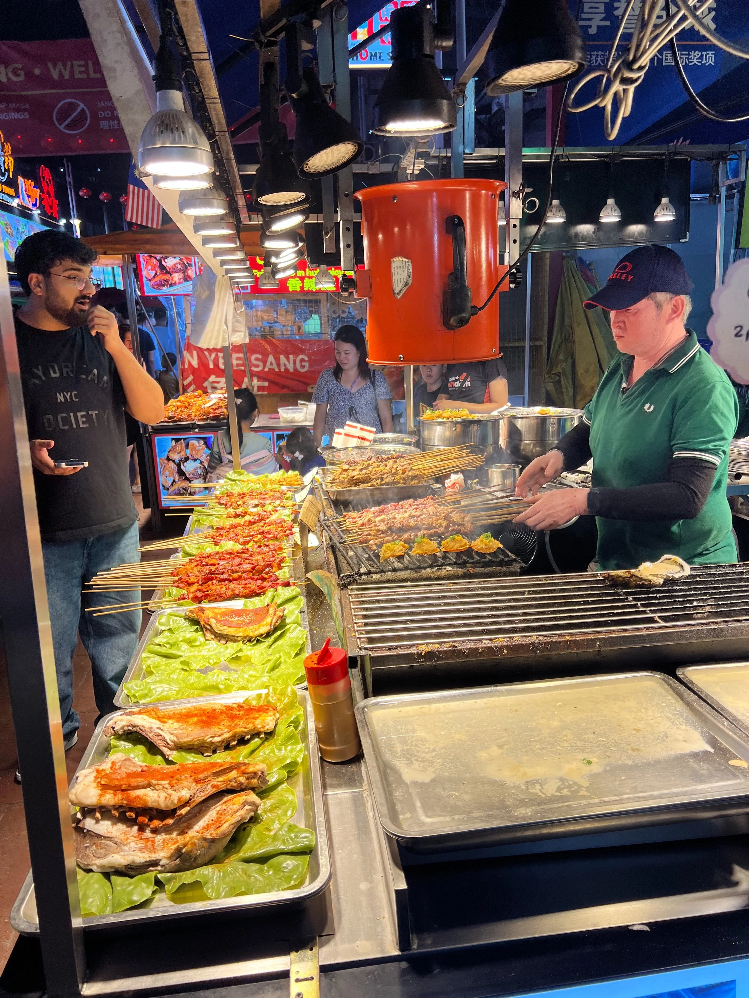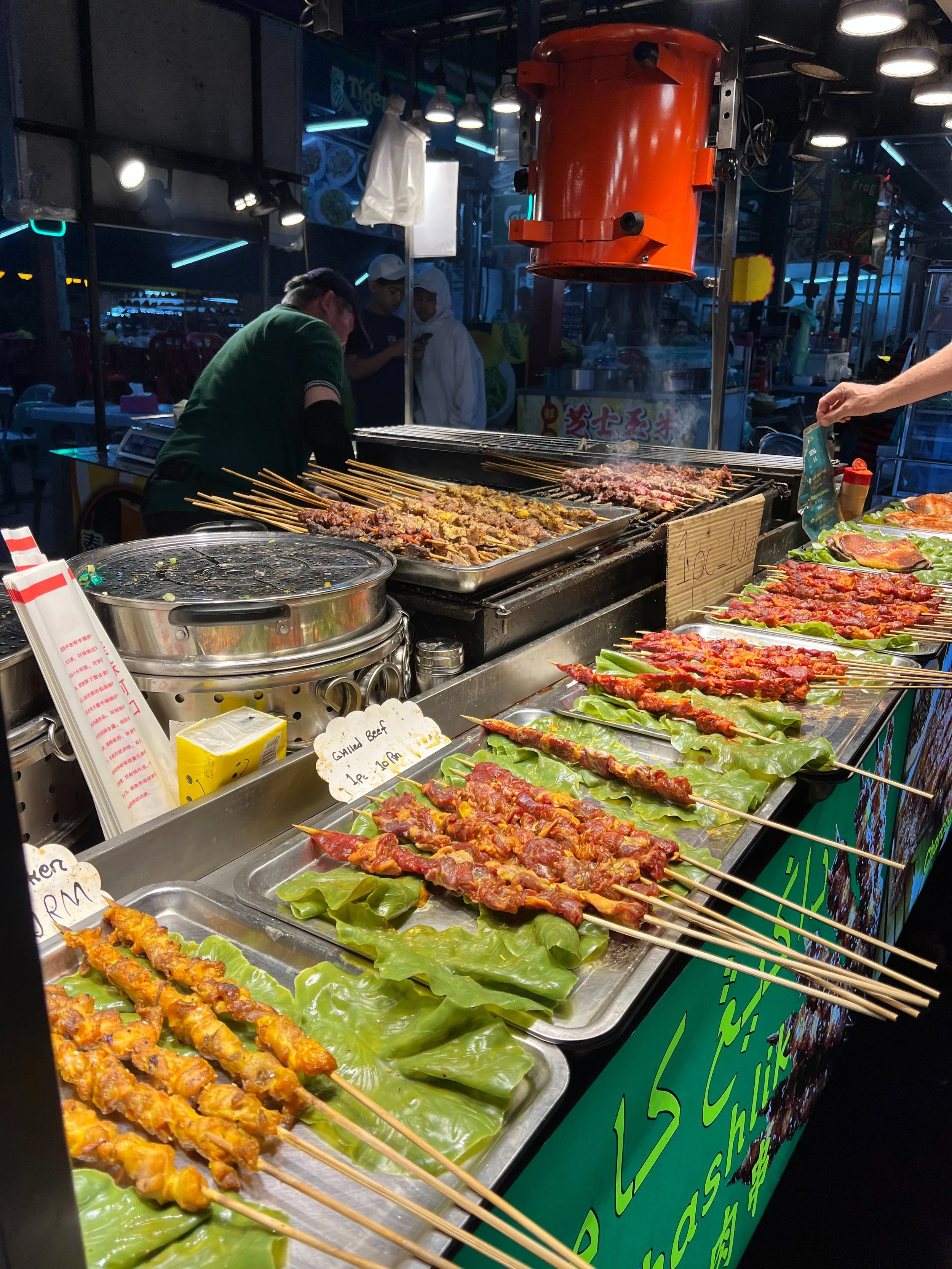 For a late dinner and our last activity for the night we walked from KLCC Park to Jalan Alor Food Street, the night market of KL. We got lamb and beef skewers, grilled scallops, fried durian (this was interesting!), mango juice and desserts along the busy street. I don’t know if I have been spoiled by night markets in Taiwan but I thought there were a little bit less options here? There were sit down restaurants along the food street as well but we just weren’t that hungry to want to sit down for a full meal. We were going to call a car to get back to the hotel but realized it was only a 10 min walk so we walked through the busy streets of Bukit Bintang one last time before we leave tomorrow afternoon.