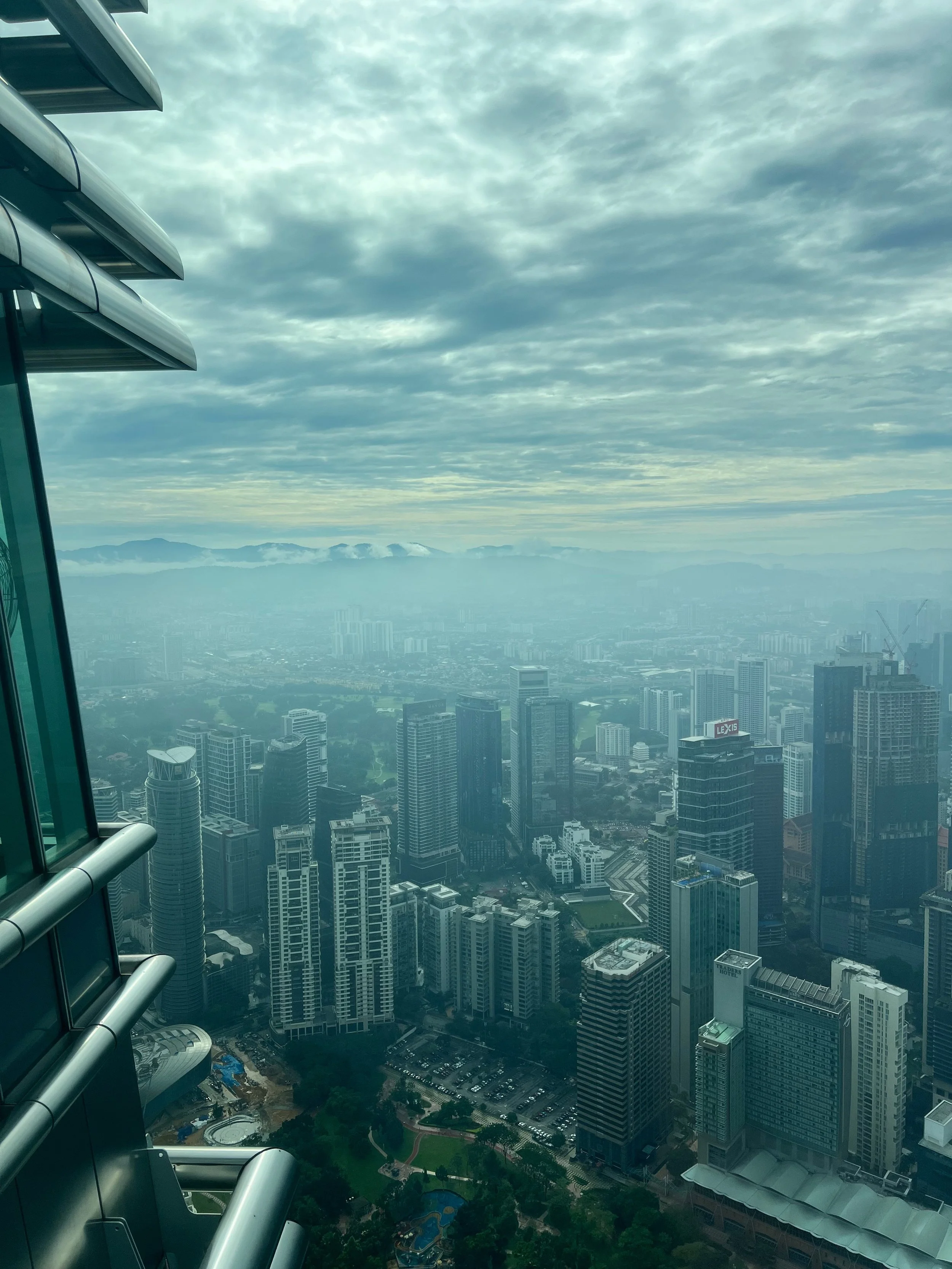On our last day of the stay we have an early morning reservation for the Petronas Twin Towers at 9:15AM, so we had to be up early to pack our bags and check out of our hotel. The Petronas Twin Towers is probably THE signature building of Kuala Lumpur, completed in 1996 and was once the tallest building in the world (it remains the tallest twin towers in the world, and the 2nd tallest in KL). We had picked to visit on the last day because this was the only somewhat clear day in our schedule, and we didn’t want to risk not seeing any views up on the viewing deck. The elevators take you first to the 41st storey skybridge that connects the twin buildings - it’s actually a double deck but the top deck is reserved for Petronas employees only. From the footbridge you take another elevator to the observation deck on the 86th floor.