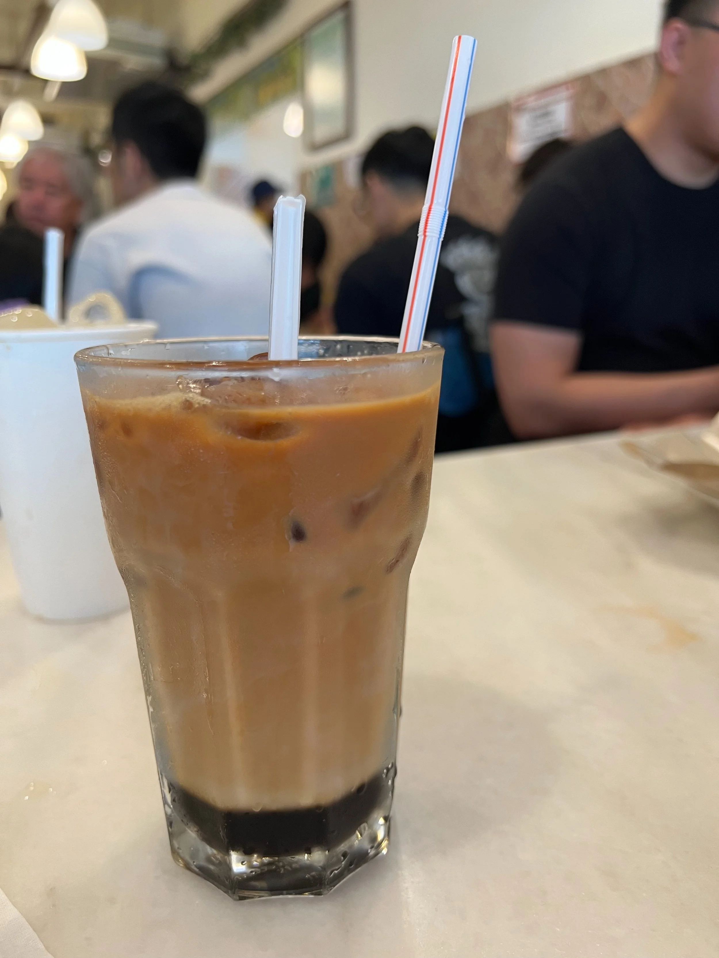 For our last meal in KL we took a car to Village Park Restaurant, a bit out of the city but a place known for its nasi lemak - a spiced friend chicken with a fragrant coconut rice called nasi lamak ayam goreng. It’s a no frills place with lots of seating, and there is always a line outside (it moves fast). We got there before the busy lunch hours and the place was already packed. I got their signature dish which only cost 13RM (3.17USD) while my brother tried a noodle dish. We also finally got to try the 3 layered tea which has palm sugar syrup, evaporated milk, and black tea.